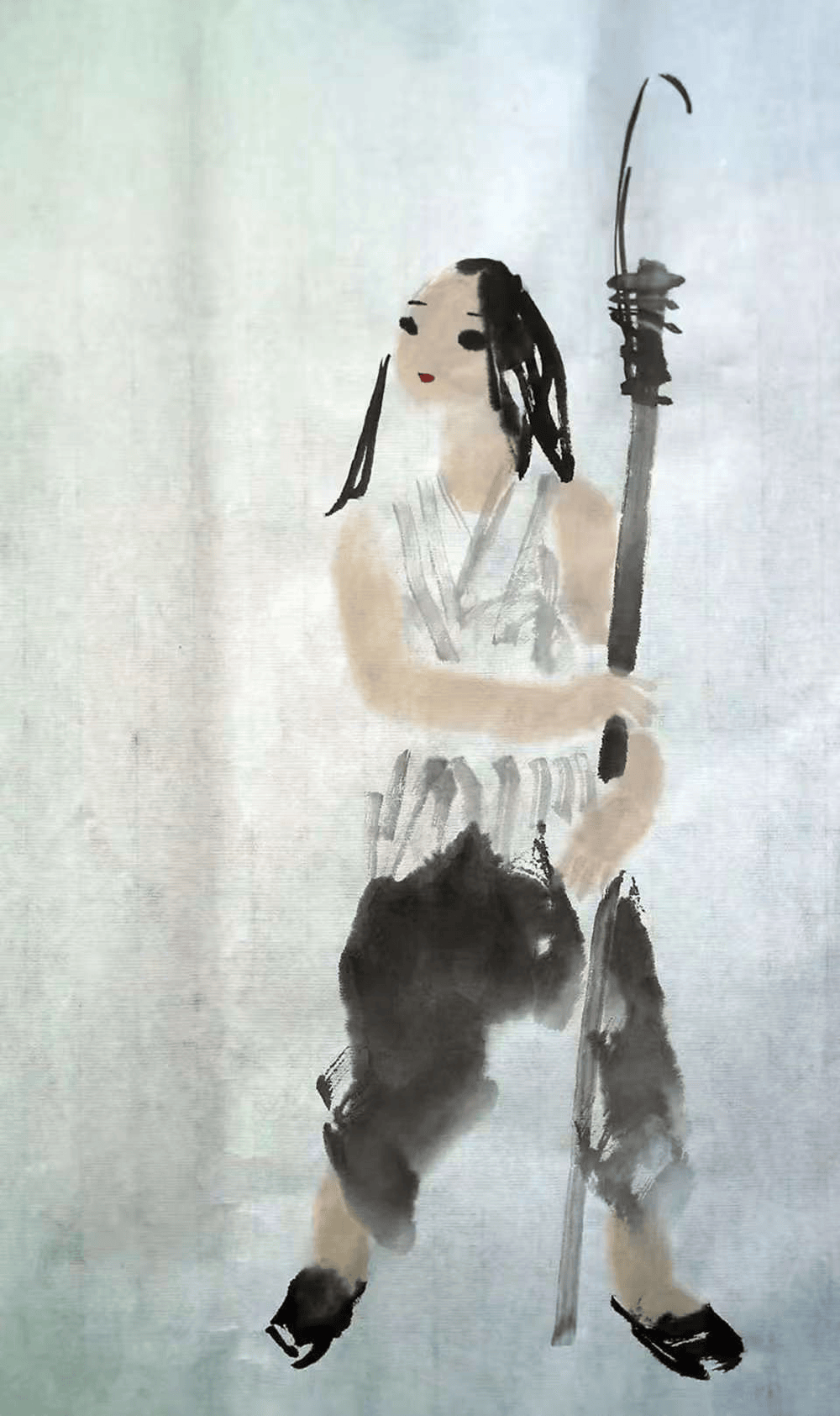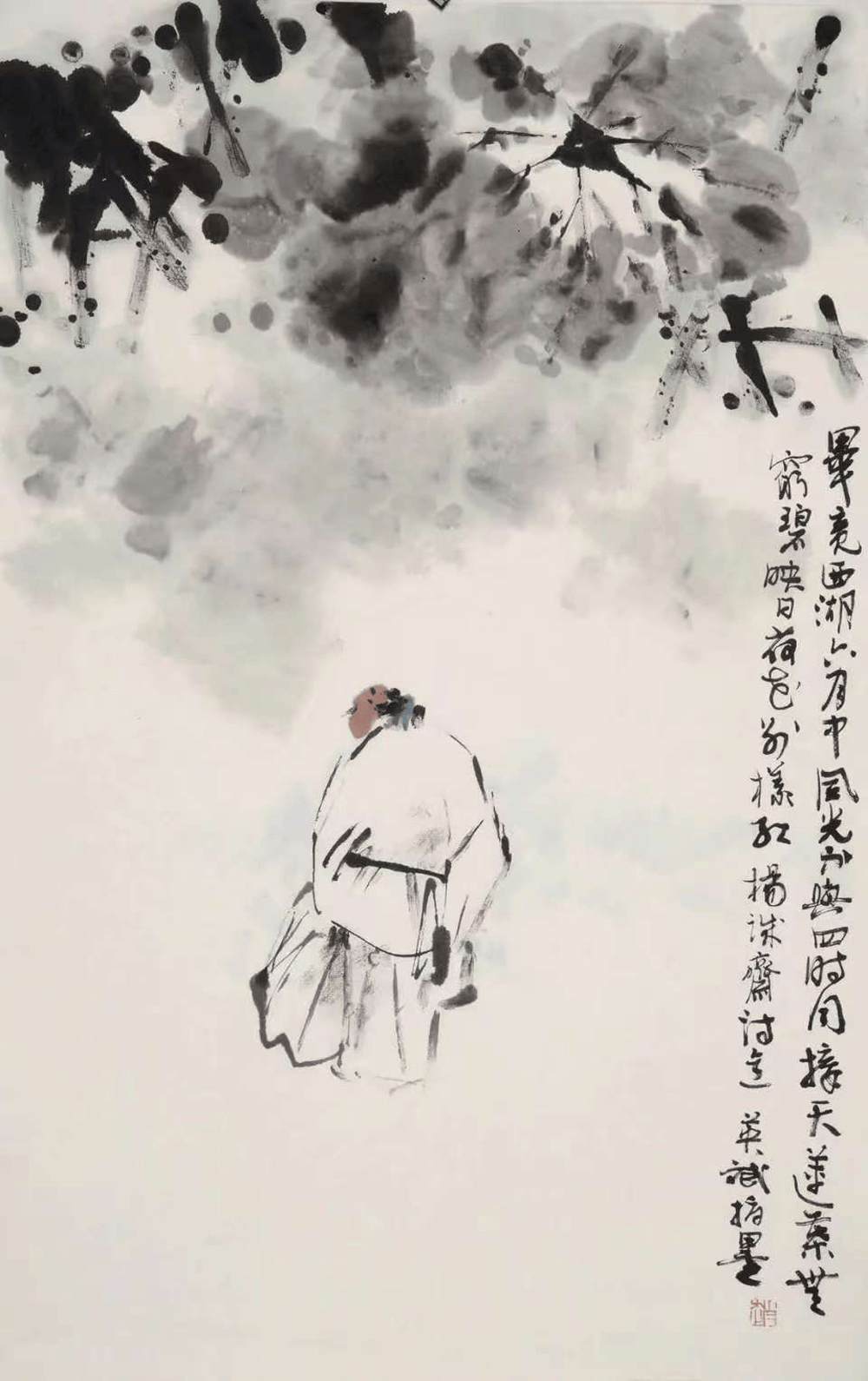 《毕竟西湖六月中》(指墨)70×45cm 六、结论 赵英斌在中国写意人物画的艺术理论与实践方面取得显著成就。他融合中西方美学思想,形成独特艺术理念,在笔墨运用、人物造型、意境营造上展现出鲜明特色,对中国写意人物画的发展做出重要贡献。其艺术探索与成就为当代绘画创作与研究提供宝贵经验,激励更多艺术家在传承与创新的道路上不断探索,推动中国写意人物画艺术不断发展。