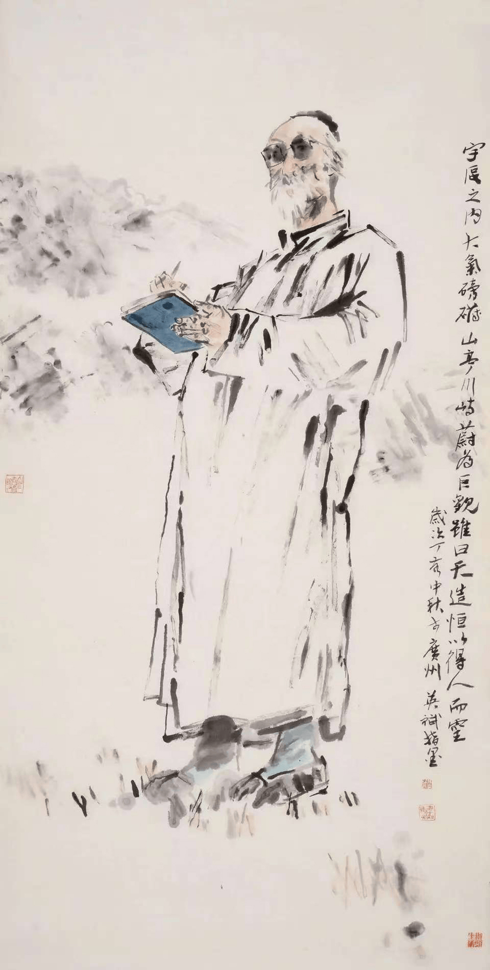 《齐白石》(指墨)135×70cm 五、对中国写意人物画的贡献与影响 (一)推动艺术理论发展 赵英斌的艺术理论专著《画余论画》等,对中国写意人物画的理论进行了深入探讨与总结,为该领域的理论研究提供了新的视角与思路。他对中西方美学融合的思考与实践,丰富了中国写意人物画的理论内涵,启发当代画家在创作中如何更好地吸收外来文化,推动传统绘画的创新发展。