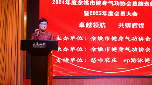 大会在主持人叶玲兵与毛凤君的优雅串联下缓缓拉开序幕。首先,协会章钢儿会长发表了激情洋溢的致辞。他深情回顾了过去一年的艰辛与收获,强调这些来之不易的成果是全体会员团结一心、共同努力的结果。展望新的一年,章会长表示,协会将继续秉承初心,砥砺前行,致力于让健身气功惠及更多姚城民众,共同谱写协会发展的新篇章。