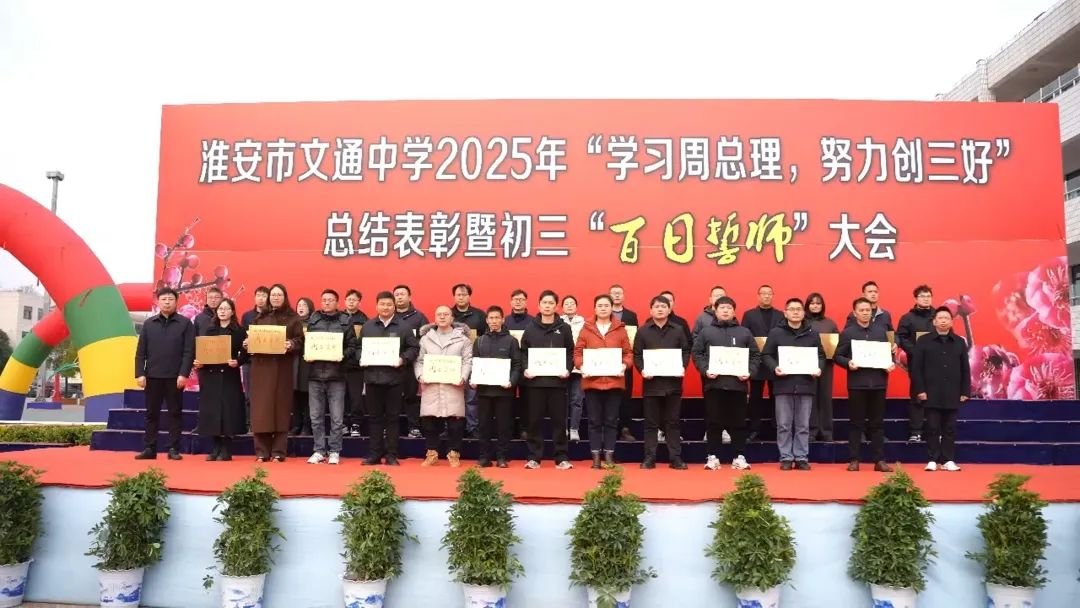 海棠依旧人远游,功德伟绩载春秋。3月7日上午,文通中学在校田径场隆重举行百日冲刺”誓师大会。 第一篇:礼迎国旗 齐唱国歌 ![]() 红旗飘扬,心火澎湃。随着高亢的国歌奏响,鼓舞人心的旋律回荡在校园里,全体师生高唱国歌,向国旗行注目礼,鲜艳的五星红旗冉冉升起,学子们心中都升腾起奋楫博发、奋战百天的斗志和信念。 ![]() 第二篇:展望未来 ![]() ![]() 王贯飞副校长宣读表彰决定并组织颁奖。 ![]() 第三篇:百日誓师 逐梦中考 ![]() 十年磨剑蓄势发,蟾宫折桂士气骄。百日誓师大会在于志豪、刘奕萱两位同学的主持下拉开帷幕。 学生表态,豪情满怀。初三(6)班朱雅馨同学作为学生代表发言。朱雅馨同学表示要珍惜100天,合理安排学习时间,讲究学习方法,提高学习效率,以笔为楫,以梦为帆,去冲刺、去迎战、去谱写文通中考的新辉煌。 ![]() 中考礼物,纸短情长。在舒缓动人的背景音乐中,同学们和家长们互相交换信件,安静地读着对方写下的文字。同学们的眼中闪烁着泪花,家长们的眼中也充满了感动,这封信,不仅仅是一张纸,更是爱的传递,是彼此心灵的沟通。 校长嘱托,殷切期望。龚鹏程校长作动员讲话。龚校长说,又是一度春风起,再到中考冲刺时。希望全体同学要用“熬”的坚持、“磨”的韧性、“静”的智慧,在紧张的备考阶段,心怀梦想,专注学习,沉住气,去实现人生无限的可能。龚校长发言为百日冲刺明确方向,激励着每一位同学奋勇向前。 ![]() 诗以咏志,奋勇前行。刘梦雪老师、林嘉静同学、吴霖森妈妈、熊叶子妈妈带来诗朗诵《以拼搏为帆,与时间赛跑》,为孩子加油助威,为中考保驾护航。 师生宣誓,并肩同行。王震主任、吴凤杰老师作为领誓人带领全体老师宣誓。初三(6)班李雨泽同学带领全体同学宣誓。激情澎湃的铮铮誓言在校园回荡,充分展示了初三师生冲刺中考的决心和坚定的信念。 ![]() 山长水阔,无畏启程。在紧张激动的大会氛围中,龚鹏程校长、王爱宝副校长、马龙巍副主席为初三全体师生揭开100天倒计时牌。 ![]() 第四篇:鱼跃龙门 壮志凌云 ![]() 宣发凌云志,百日蓄势时。10时48分,全体初三老师集体整队,在龚鹏程校长、王爱宝副校长、马龙巍副主席及全体行政领导的带领下踏上红毯,跨状元门。 一鸣从此始,相望青云端。在班主任的带领下,伴随着学弟学妹们热情嘹亮的欢呼呐喊,初三学生携手父母斗志昂扬地跨过寓意为金榜题名的状元门。老师们、学弟学妹们则分列红毯两侧,夹道鼓掌,用掌声、加油声、战鼓声,用亲切温和的笑脸和殷切期盼的目光,为初三的学子们送去最真挚的祝愿,祝愿他们金榜题名,蟾宫折桂。 ![]() 岁月铭刻奋斗的艰辛,时代印证铿锵的脚步。“百日誓师”,它不仅是一种仪式,是厉兵秣马征战沙场的号角,更是“狭路相逢我必胜”的庄严承诺。祝愿全体初三的文通学子,传承“和衷共济,自强不息”的文通精神,在热辣滚烫的六月,未来顶峰相见! (通讯员:沈玉成) |