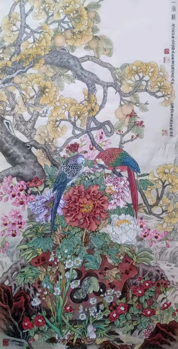![]() 《红岩颂》171×93cm 2024年 综上所述,国画艺术需要个性,而培养个性是每个想成功的画家的必经之路,就是要通过努力创作出适应新的意境所需要的新技法,让自己的作品脱颖而出,形成自己的风格树起自己的个性,这就要求我们要创造新技法,不但要动脑筋,而且要有胆识,要有不断探索的精神,要坚韧不拔地坚持下去,失败也不要紧,这是正常现象,只要自己有明确的追求目标,持之以恒,就一定能创造出自己的新技法、新风格,形成自己的个性,增强作品的生命力!注:本文已发表在中国美术出版总社主办/国家艺术类核心期刊《美术之友》2008年第四期,同时发表工笔画作品《紫荆鸣春图》。 ![]() 《生机勃勃》171×93cm 2018年 业精于辛勤,艺高于刻苦 ――贺“春华秋实”吴秋华画展 文/吴华光 吴秋华有句自我格言:“辛勤”是事业成功之前提,“刻苦”是艺术前进之动力。听后我深有此感,大千世界万物事业的成功秘诀都离不开辛勤的劳作与刻苦的探索,吴秋华也不例外,经历了三十多年的辛勤刻苦耕耘之后,今天他终于迎来了举办个人画展的日子,即将展出的五十多幅工笔画精品将给观众带来美的精神享受,同时也让人看到了吴秋华在工笔画创作道路上踏踏实实的绘画作风和不求惊天动地,但求一步一个脚印走过来的做事风格。 ![]() 《锦绣中华园》138×68cm 2024年 吴秋华举办个人画展消息的确给了我一个惊喜,都说他从上世纪八十年代起坚持二十年苦研工笔画而不为世人所知,甚至有人把他从事的国画专业遗忘,直至2008年吴秋华的国画作品《紫荆鸣春图》和论文《个性是国画艺术的生命力》发表在国家艺术核心期刊《美术之友》上,我才注意到他。今天他能创作出举办个展所需要相当数量的作品,而且是累人耗时的工笔画作品,尺度之大、数量之多,实属不易。 ![]() 《寿带吉祥》138×33cm×4 2023年 惊喜过后难免对其作品质量产生了质疑,然而这个疑问也随着我看到吴秋华画后而逐渐消失,从而深信了福州美术界对吴秋华辛勤刻苦绘画的赞誉,都说吴秋华做人低调、不好张扬,是个“埋头耕耘,不问收获”的人。于其说是他性格内向所至,不如说是他对自己作品存有永远不满足的谦逊之情。耳听为虚,眼见为实,每当我去福州画院展厅观展后去吴秋华工作室拜访,总会看到他在埋头认真地作画。 ![]() 《温馨家园》136×68cm 2024年 福州画院传达室老林告诉我:吴秋华上班没有假日,无论是刮风下雨,逢年过节,他总是第一个来,最后一个回去,除了吃饭睡觉大部分时间都在工作室作画。充分体现了吴秋华对绘画艺术的酷爱与追求。功夫不负有心人,成功总是陪伴付出辛勤刻苦劳动的人。的确如此,我观吴秋华的工笔画作品,气局阔大,生机勃发,他那喜好用画全景式工笔画来表达画意的手法,在展示他扎实基本功的同时,也展现出他惊人的毅力和耐力。 ![]() 《一家亲》136×68cm 2024年 另一方面,吴秋华采用工写结合的传统技法,使作品画面主次分明,并充满了文学味道,可以看出,他把自己文学修养融进了笔墨,在他笔下的山水花鸟走兽是其对现实生活中所表现出关乎生命意义的思考的形象化和艺术化,在倾注“韵”味和“趣”味的同时也提出了“形”、“神”兼备的问题,反映在他的作品之中,耐人寻味。我记得2009年,吴秋华的长篇小说《他乡有泪》在中国文联出版社出版,然而画家写小说也招来了一些人质疑,但吴秋华告诉我:“写作只是为了提升文学修养水平,为绘画艺术服务。”他还引用了著名画家叶浅予先生说过:“画家要有文学修养,如果没有文学修养,那你这个绘画作用就小了。”指明了文学修养在中国画创作中起到的关键作用。 ![]() 《鸟语花香》138×63cm 2023年 2011年1月他以“文学修养是成就中国画艺术的关键。”为题,撰写论文,相继在《中国艺术经典》和福州画院院刊上发表,同时发表了他的几幅佳作。2012年他那富有寓意的工笔画作品《饿鹰扑禽》荣获由中国工笔画学会主办的“2012当代中国百名中国工笔画家提名展”优秀作品奖,作品并被收藏,同时获奖作品和个人肖像简历刊登在《美术报》总第977期,使我完整地看清了吴秋华国画作品的个性风格和艺术特色:是注重画与现实生活的有机结合;是充盈着一种生活气息,在画中赋予了更多的人性化、情感化;是喜好“借物抒情,主张画中有“画”,使作品耐人寻味;是强调中国画艺术要有服务社会传播正能量、鞭挞假、丑、恶的社会责任感。 ![]() 《时光静好》171×93cm 2022年 值此我理解了吴秋华为什么白天刻苦作画,晚上辛勤写作的苦心,就是为了追求中国画精髓和灵魂,让绘画作品充满“神韵”和“趣味”,形成情景交融,雅俗共赏的意蕴,达到让人回味无穷的社会效益。为达到“借物抒情”画中有“画”这一中国画最高境界,吴秋华故意在给自己增加创作难度,将技法、神韵与作者的文学修养综合为一体,这种综合性是中国绘画艺术的主体,能使画家达到“轻而易举”的创作境地。正如宋沈括所言:“书画之妙,当以神会,难可以形器求也。”写到这里也让我想起古人曾说:谋事求成,当以勤为径,苦作舟之精神也。从中赞叹吴秋华辛勤作画,刻苦创艺精神,为此有人引用齐白石先生的诗句:“食叶蚕肥丝自足,采花蜂苦蜜方甜”对吴秋华其人其画赞誉。 ![]() 《风景这边独好》136×68cm 2024年 当下国民正精神焕发,为实现中华民族伟大复