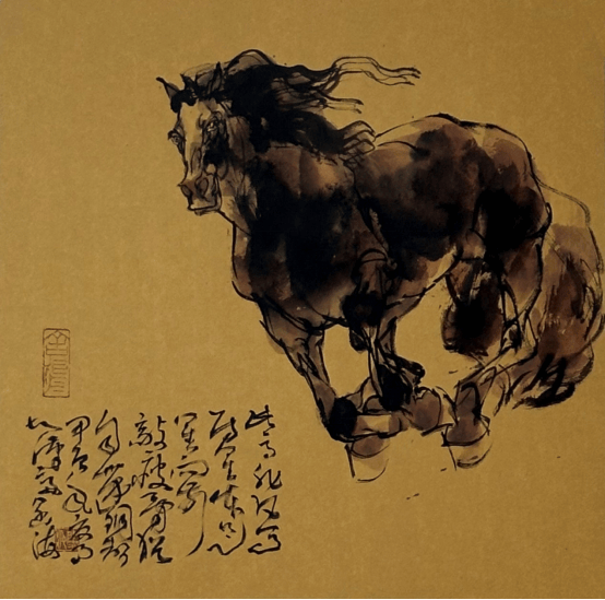 就中国画本身而言,其素描造型对中国画的改良有着更为本体和本原上的意义。而整个中国美术教育,无不是建立在徐悲鸿中国画思想和教育体系之上。然而,沿着这一路径下来,当代中国画越来越不能承担和负载起传统中国画博大深厚的精神,即中国画的精髓——文人画传统。故此,如何既继承上一代大师开创的素描改良中国画的优势,又能使其承载传统中国文人画的精神,使二者兼得,摆在了有责任和担当的画家身上。问题只在于,如何将徐氏的创造与中国画传统笔墨进一步深入结合,而不是跑偏去画西画。这是一个看似简单但实践起来却并不轻松的课题。经过几十年的探索,王阔海先生解决了这一大难题,完成了时代赋予的历史使命!与徐悲鸿的贡献同样对当代中国画起到了巨大的推动作用。 当然,徐悲鸿作为中国画大师,是爱国主义的典范。在徐悲鸿的作品中,随处可见他的爱国热忱,无论是历史主题还是现实题材,无论是“奔马”还是“雄狮”,都体现了他热爱祖国和人民的情感。其作品在具备美术史意义的同时,赋有显着的象征意义,反应了一个时代革命与新力量的壮大,具有很深的感召力,有着属于那个时代的浓厚时代烙印。 今天,美术的作用同样不可估量。马的的忠诚与高贵,奔腾不息、不可征服,与人类同生死共荣辱,是人类最忠实的朋友。骏马奔腾的的神韵,更是画家笔下屡见不鲜的形象,被喻为天马、动物中的龙,同曰为龙马精神。王阔海先生笔下的马,与悲鸿先生笔下的马同样具有这种奔腾不止的精神品质。有所不同的是,悲鸿的马因呼唤时代精神而具有一种概念化的倾向和特征,而王阔海先生画的马则更加丰富生动,既具有龙马精神也具备人间情味,既是龙马的人间化身,也是人的精神面貌的物化形式在马等动物身上的艺术化表现。所以,王阔海先生画的马等动物,能得到爱好者的极力追捧,一经脱稿即被藏家争相收入囊中。 究其原因,除了精神上相通之外,与悲鸿先生相比王阔海先生画马于传统笔墨上的回归,并独创“中画素描”以线造型,使得画面更加充实而丰富,从而在画法上实现突破并奠定了坚实的基础。