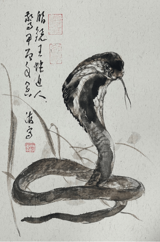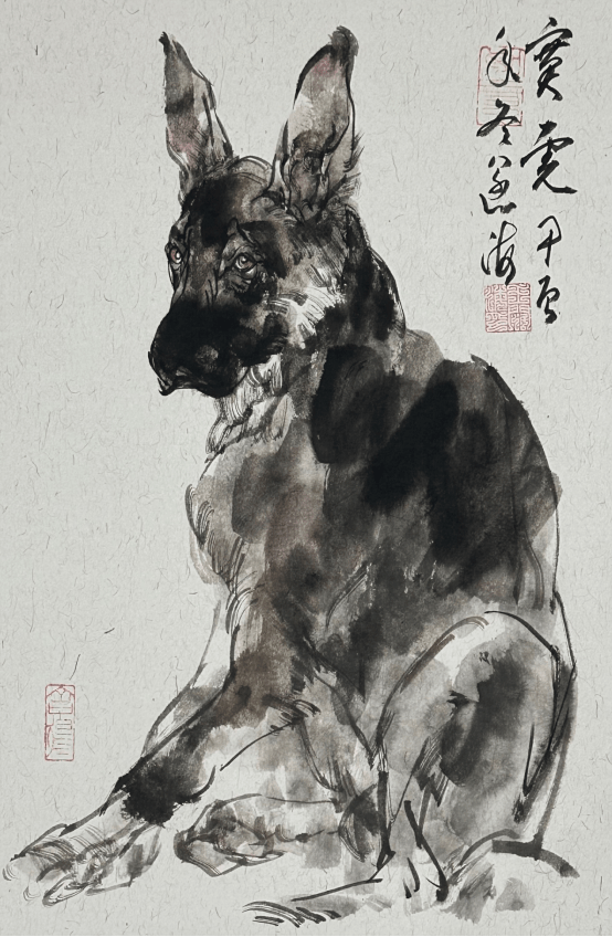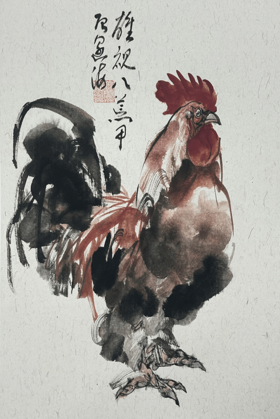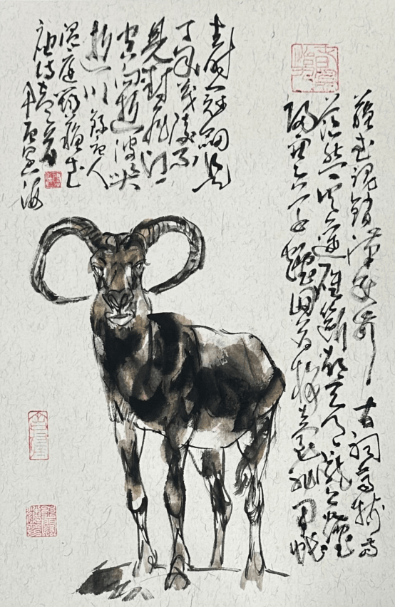 当代画动物的高手不乏其人,王阔海先生则从中脱颖而出,以独特的画法开创了中国画大写意动物的崭新局面,把徐悲鸿等上一代画家在中西融合中尚未完成的创新,向前推进一大步,从本质和本体上,彻底解决了中西融合的历史进程,使之西方油画素描造型诸元素春风化雨般地被溶入到中国画语素当中去,可谓"润物细无声”哉。把中国画动物画在写意之写实方面刻画的更为深入,物象更为贴近,造型结构更为结实,体积感更为强烈,墨色变化更为丰富,笔情墨趣更加饶有兴味,且全都是书法用线铁画银钩笔笔精准到位,笔墨则酣畅淋漓,大有八大,徐渭文脉遗风;既继承发扬了文人画诗书画印四者并举的特质,又将古典主义、学院派、文人画、西方绘画融会贯通,真正做到了古为今用,洋为中用,使近百年的中西合璧这一历史命题得以基本完善。成为新时代大写意中国文人画的又一座高峰。其坚实的基础,除了最基本的中西绘画训练之外,是王阔海先生所独创的“中国画素描”理论为依据,以及以“汉学为基,汉风为魂,汉画入墨,幻化标新。”莸国家发明专利权的新汉独创为艺术制高点,更以诗文和坚实的书法功底,作为文人画大写意动物画艺术高峰的支撑平台(有人为此比喻王阔海的画是艺术上的马云)。在之前的两篇文章中,我们已经就此作过概论性的分析,本篇则对王阔海先生的系列动物画与现当代同类画法进行比较,以见其独特的创新与艺术高度。