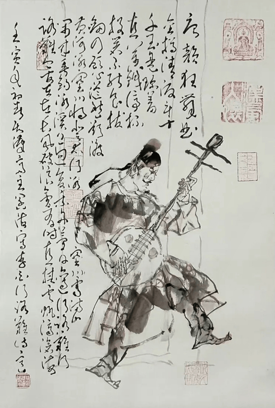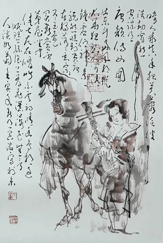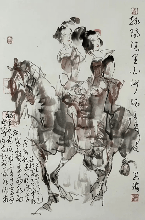 谈到笔墨为索描服务的问题,我们更应防止另一种倾向那就是把素描教学一棍子打死。素描对中國画人物造型有着举足轻重的作用,徐悲鸿引进素描是功在千秋的。问题是如何为我所用,如何将西方素描造型诸因素润物细无声般的融化在文人画的笔墨当中去,这才是中西合璧最关健的要素之所在。吾曾有言“若论造型,古不如今。若论笔墨与文化品位今不如古”。当今画家最重要的要解决文化品位问题,也就是大写意精神问题。 追根溯源我们似乎窥见大写意精神与大写意画在与我们当代画家捉开了迷藏,这使得我们欲求而不逮,如何让大写意精神归去来兮,余以为当代画家要补历史留给我们的文史哲的课,诗词歌赋的课,书法的课方能凑效!其作品方能得到古文人画的品质、品味、品格,而且要持之以恒一补到底!方能不辱使命,方能不辜负中华民族伟大复兴这个伟大的时代!我们应自信的大喊一声“苍天不负我,我不负苍天”!这使我想起了叶剑英攻科学难关的一首诗引以为共勉:“攻城不怕艰,攻书莫为难,科学有险助,苦战能过关。” 王阔海——2024年7月22日