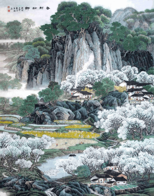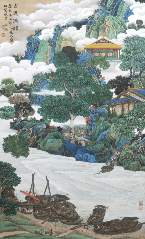 古渡清韻108x65 习画初期,起点较高,多年来一直对中国传统绘画难度较高的界画,青绿山水以及严谨的宋画进行认真的学习研究,长期反复的训练、写生、创作,使自己的作品具备了独特的艺术风格,所创作的作品崇尚自然,内容丰富,构图严谨,雅俗共赏。
