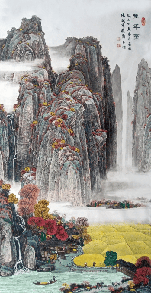 丰年图132x69 在创作理念上,最大限度地力争创作出的每一幅作品都能让人看了赏心悦目,成为能够让社会各阶层人士都能看得懂的平民艺术。