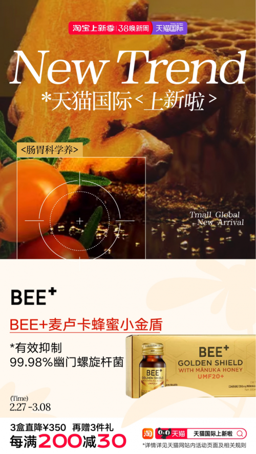 初春时节乍暖还寒,气温的大幅波动可能导致代谢失衡,造成肠胃不适,“肠胃科学养”趋势强调以温补的方式调理肠胃、科学养护。德国月神品牌的月神一日清排便益生菌,添加全球首创的24小时专利排便益生菌,达到母婴级安全标准,适合全家服用。以及来自Beeplus的bee+养胃小金盾是全球首款全链路肠胃养护功能饮,有效抑制99.98%的幽门杆菌,一瓶实现抗炎养胃。