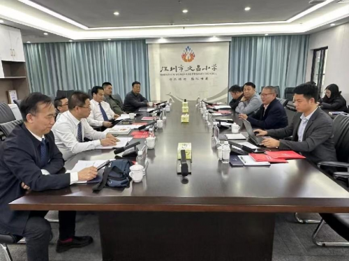 考察团一行在广东深圳文昌小学,与魏忠校长等领导展开座谈交流。院领导指出学校以“两法”为指引,围绕国防及爱国主义教育的主要内容,通过丰富多样的教育活动,彰显爱国主义,固本培元,凝心铸魂,让爱国主义精神在学生心中深深扎根,以红色基因与问天精神为引领,打造独具特色的爱国教育新典范,培养有中国心、中国情的中国少年,力争建设成为新时代国防爱国主义示范校。