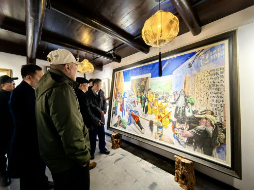 尹文(东南大学艺术学院教授、硕士生导师、中国美术家协会会员): 在当天的研讨会上,尹文教授认为:这次杨帆的书画展,向我们完整展现了杨帆艺术创作的路途路程,表现出了他的艺术根系是深深扎根在中国的大地土壤和传统文化中的。在他的油画作品中,我们看到他画家乡的渔民、街头的老手艺人、各式戏曲人物、天真烂漫的孩童、饱经沧桑的慈祥老人,他也画家乡的四季风景、祖国的大好河山,刻画深入细致,油画专业的基本功非常扎实。作品给人以强烈的视觉冲击力。杨帆的国画,也是题材宽广、形式多样,山水、人物、猛兽、博古皆有涉猎、皆有研究。尤其是他以中国诸多传统元素来入画的《穿越》系列,更可见杨帆老师兴趣爱好的根系是直接指向了中国传统文化的深处。作品中还有很多的书法元素,比如甲骨、钟鼎、楷书、行书、汉简等,不仅充分展现了杨帆的艺术与人文素养和功底,同时也是一种很好的创新。还有杨帆的狂草书法长卷,可以看出他的这个胸襟的开拓:书写不再是书斋的,不再是案头的,不再是临帖了,是放开手脚直抒胸臆,这是非常珍贵的。杨帆的这种无问东西、无问画种、无问题材、无问艺术种类的跨界贯通给我们很大的启发。