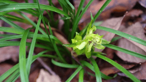 前段时间听说浙江省武义县新宅镇道芝村有座“兰花山”,山上种着很多回归自然的兰花。与道芝村副主任也是兰花山“山主”的邱小明联系,得知山上的春兰已花开。3月16日,一场春雨后天空开始放晴,约了同学桂花,友仙群,携妻子一起去观赏。 从武义县城往新宅方向出发,过少妃,驱车约35公里就到了道芝村。该村位于许曳线旁,村对面一块巨石上雕刻着“兰花山”的大字,很是引人眼目。在邱小明热心地陪同下,走过一座小小的石拱桥,沿着台阶从左往右的山上边走边观赏一株株的兰花。有的种植在厚厚的落叶中,有的生长在石缝里……,春兰叶片翠绿修长,有的已花开灿烂,鹅黄色的花苞吐着“花舌”,有的一株开一两朵,有的三四朵,探头探脑,如同春日的精灵,迎着微风轻轻舞动,散发着淡淡的花香。还有的花苞紧闭,如同一个美丽的秘密,等待春风轻轻解开。