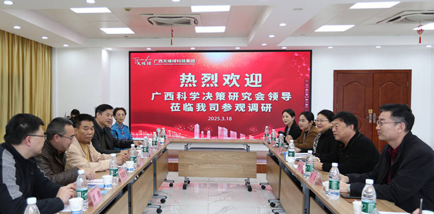 为贯彻落实国家“健康中国”战略部署,深化产学研协同创新,推动广西大健康产业高质量发展,3月18日下午,广西科学决策研究会名誉会长何有学、会长苏力等一行8人赴广西天缘绿科技集团开展专题调研。天缘绿集团运营总裁郭阳、技术服务总监李丰等领导热情接待。