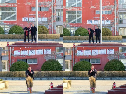 集合完毕后,政教处江主任结合校园实际,以通俗易懂的语言讲解了火灾预防要点、火场逃生技巧及报警注意事项。他通过互动问答形式强调:“遇到火灾要保持冷静,牢记‘弯腰低姿、湿巾捂鼻、有序撤离’十二字口诀。”学生们凝神倾听,积极回应,现场气氛热烈。
