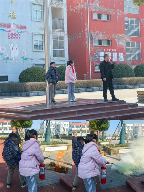 江主任现场示范了消防栓的正确使用方法,逐步拆解步骤。在实践环节,六年级学生王浩宇与陈思涵主动报名参与模拟灭火演练。两人按照“一提二拔三握四压”的操作规范,精准扑灭模拟火源,赢得师生阵阵掌声。