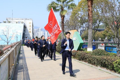 3月20日正午时分,阳光明媚,邮储银行瑞安市支行职工们身着统一工装,佩戴“邮爱公益”标识,随着党支部书记、行长缪正恒同志一声令下,队伍精神饱满地出发,开启了以“同迈健步,共筑同心”320邮爱公益为主题的徒步之旅。 徒步路线串联起城市自然与人文景观,从支行大楼出发,途经瑞安外滩、滨江大道,最终抵达瑞安市国旗馆。沿途春光明媚,职工们或疾步快走,或结伴而行。两处打卡点的集体合影,不仅定格了团队昂扬向上的精神风貌,更将公益足迹镌刻在城市记忆之中。 该行职工们以规范统一的形象传递金融从业者的责任担当,以矫健的步伐丈量爱心,将每一步转化为公益力量——通过公益平台,捐步数据将兑换为公益金,实现“运动+公益”的双重赋能。这种创新模式让职工在享受运动乐趣的同时,也为社会公益事业贡献绵薄之力。