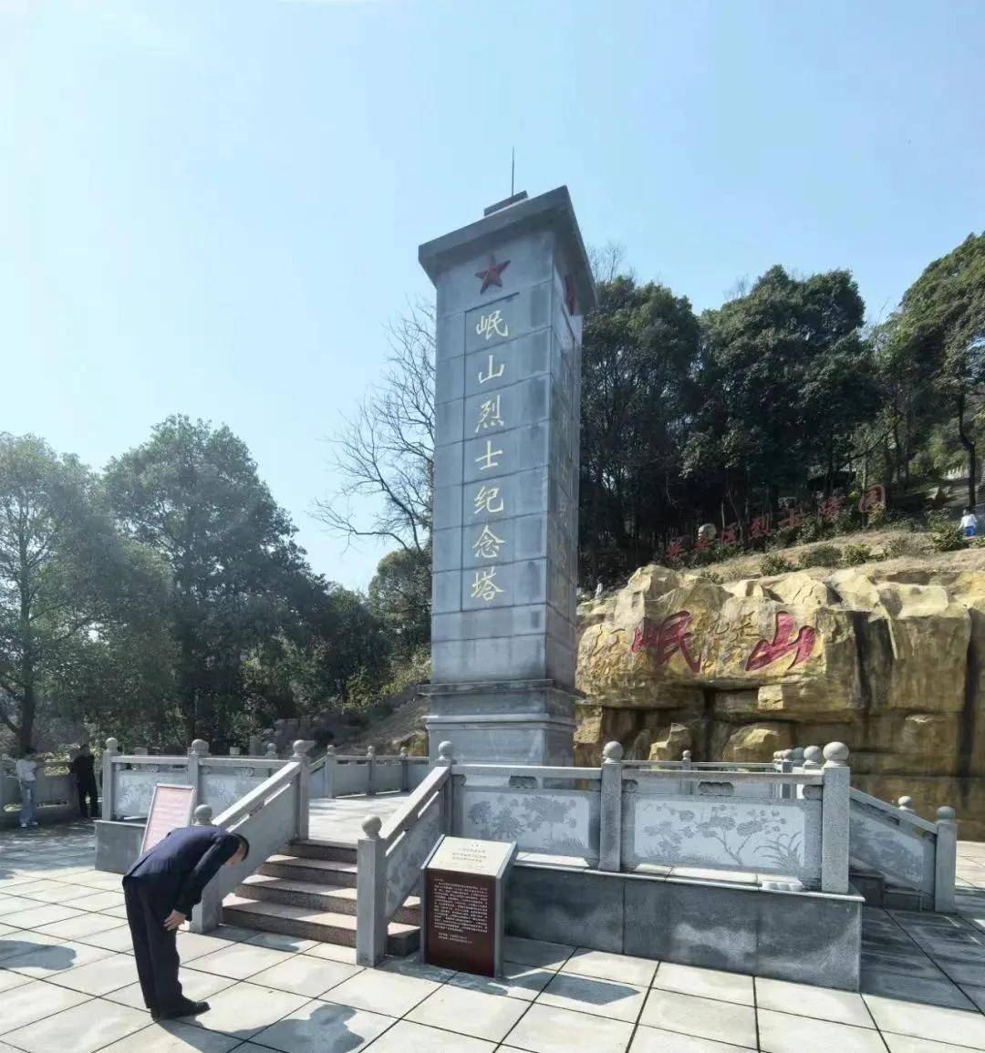 瞻仰岷山烈士纪念塔 在岷山烈士纪念塔前,调研组举行了庄重的缅怀仪式。韩银山带领全体成员向革命先 烈敬献花篮,并鞠躬默哀。他表示:“先烈们用鲜血和生命铸就的革命精神,是我们最宝贵的精神财富。”
