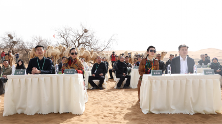 发布会特邀文化大使罗永甄发表主题演讲。他深情说道:“阿拉善的沙粒里藏着文明的密码,而这瓶香水,正是打开记忆的钥匙。”他强调,摩天轮智美的探索不仅关乎商业,更是在唤醒人们对自然与文化的敬畏。 摩天轮智美集团董事长瞿承霞从可持续发展角度,高度介绍了品牌的创新模式。“‘空瓶回收+故事拍卖’不仅减少资源浪费,更让每一瓶香水背后的情感延续。”在发布会现场,与阿拉善左旗梭梭源科技有限责任公司签订战略合作协议,至此阿拉善左旗梭梭源生态基地成为摩天轮智美生态研学基地。她特别提到,用户可通过香水编码兑换梭梭林认养权益,使消费行为直接助力生态修复,实现商业与公益的双赢。 中央广播电视总台中视元创项目负责人雷有福现场宣布了与摩天轮智美的联名合作。他表示,此次合作不仅是商业联名,更是国家级媒体对地方文化IP的赋能,让沙枣花的香气伴随央视IP走向更广阔的舞台。 托雅牧场亮相,构建大漠生态产业链