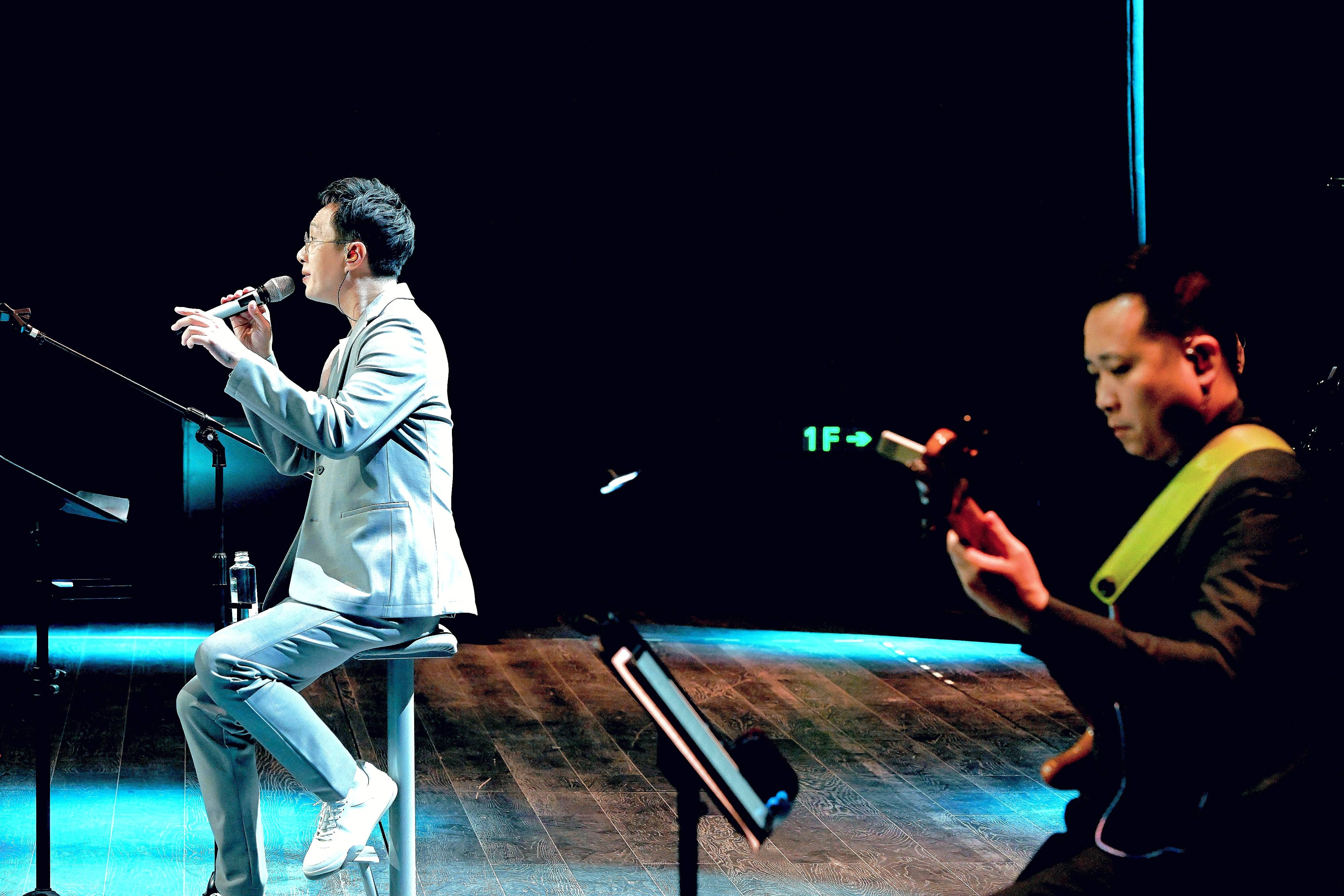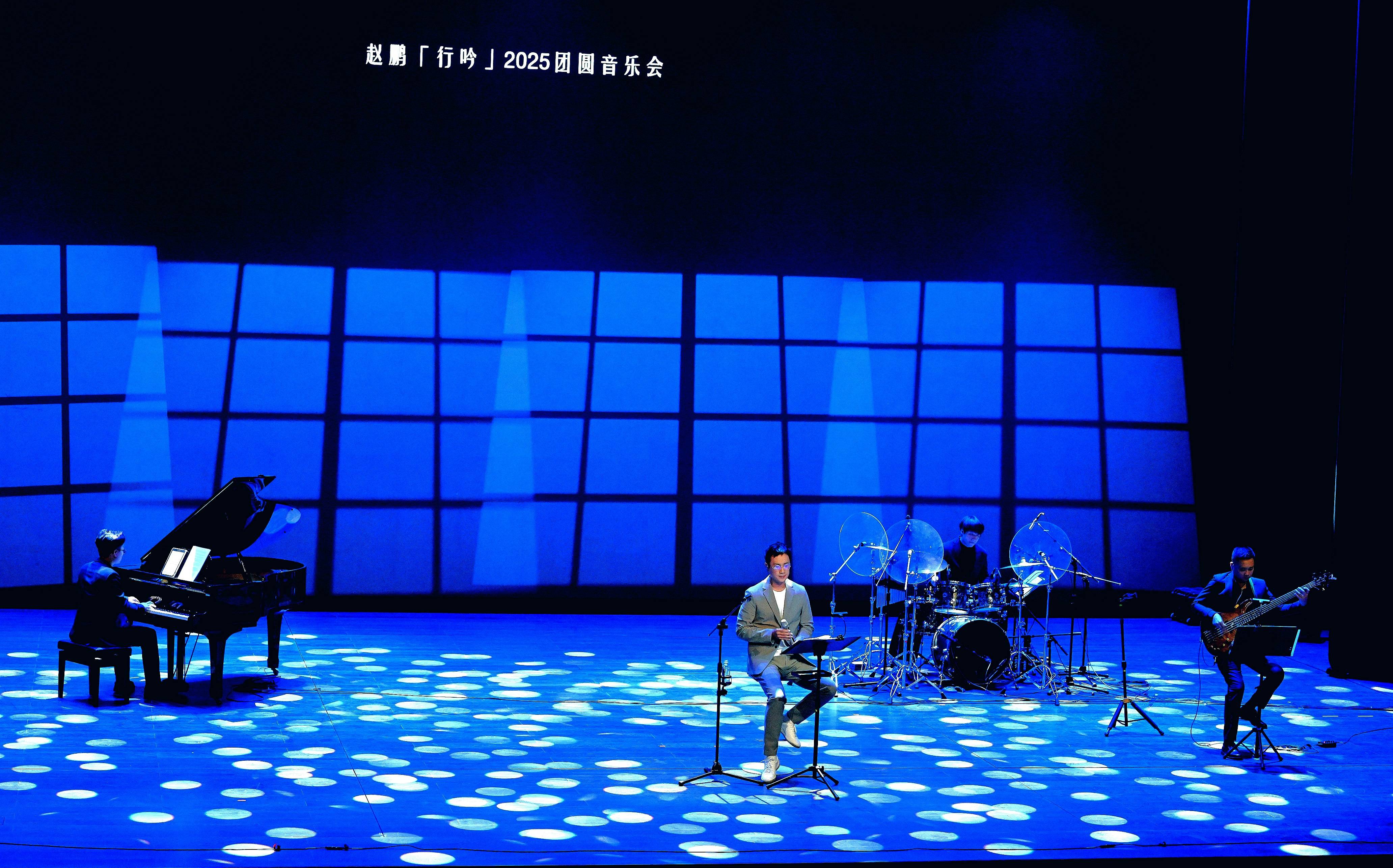 演出伊始,赵鹏醇厚而富有磁性的嗓音瞬间穿透空气,礼堂内鸦雀无声,听众们沉浸在他塑造的音乐世界里。他接连演唱了18首歌曲,曲目涵盖了他个人创作的经典作品。