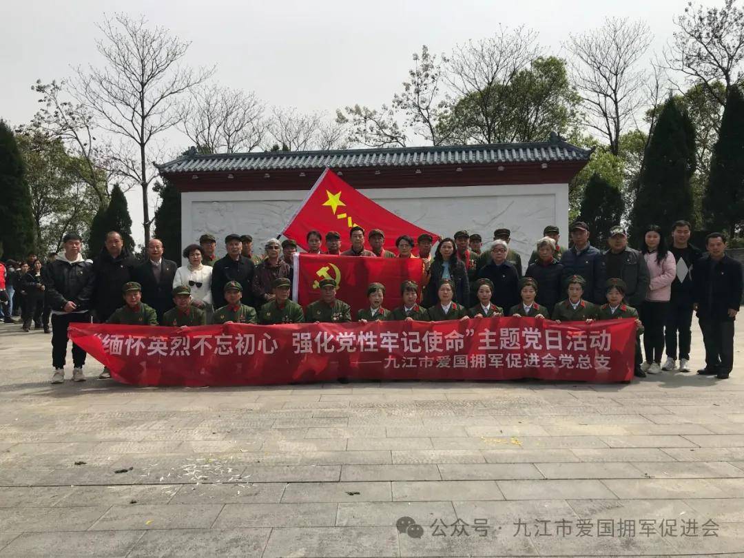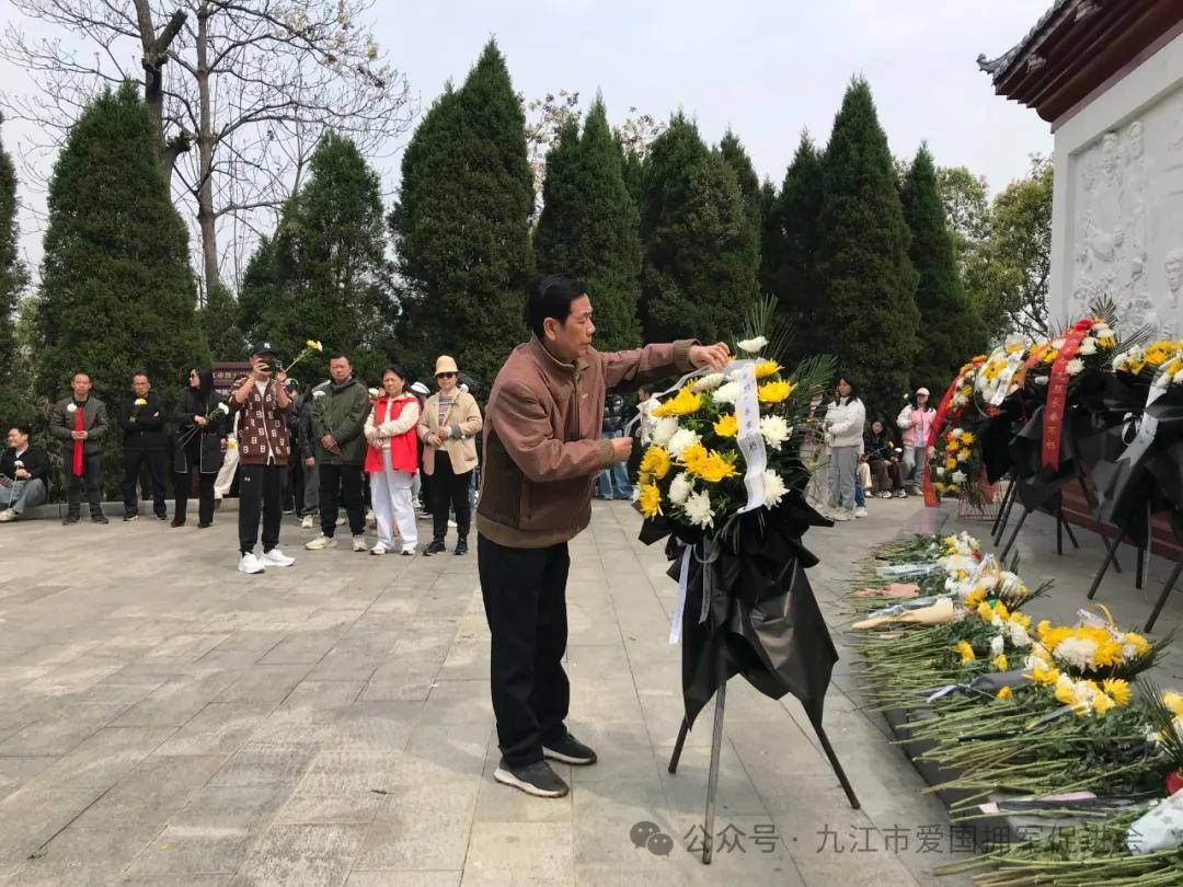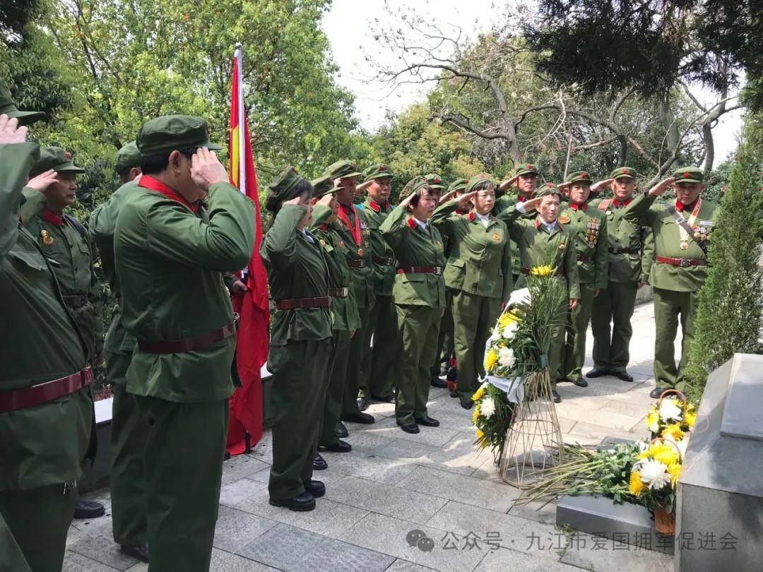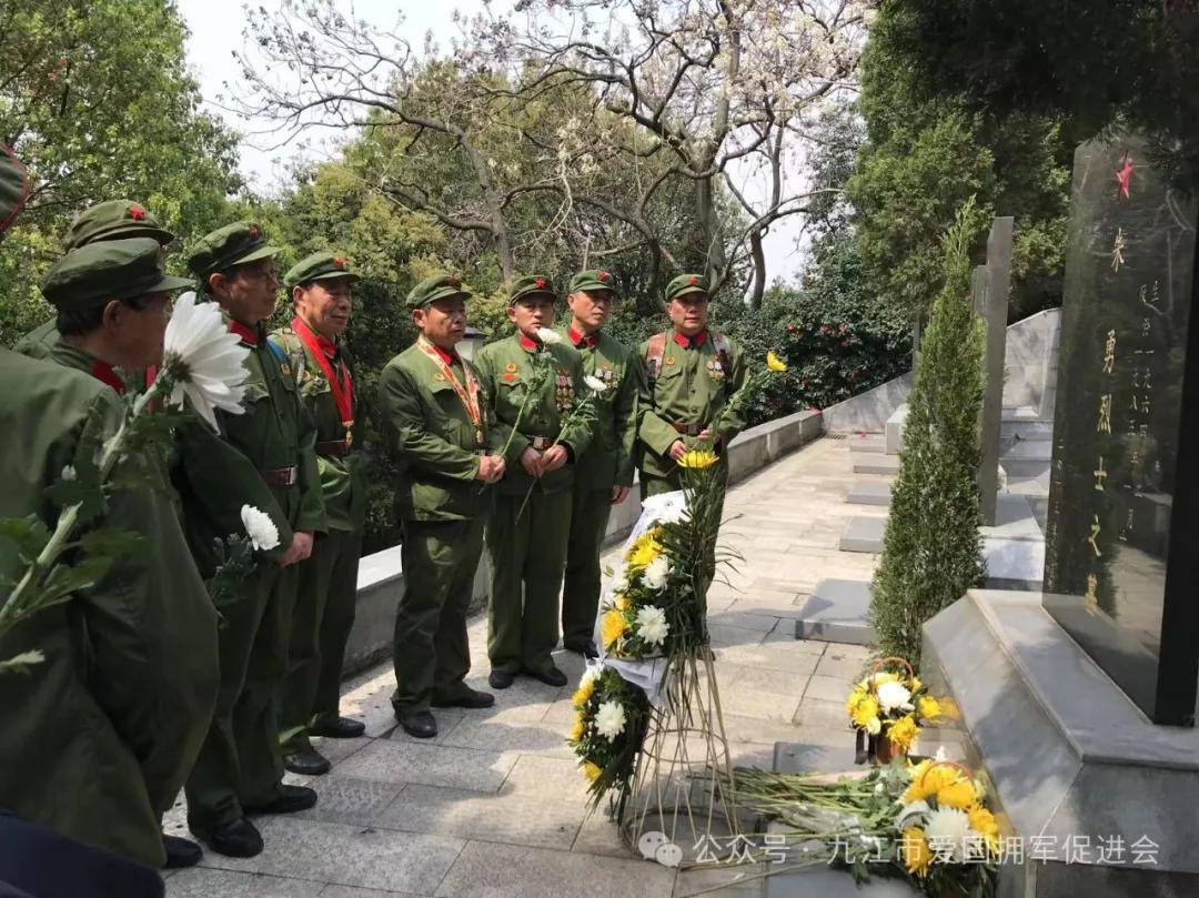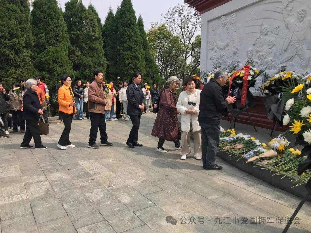 ——九江市爱国拥军促进会清明祭扫活动纪实 四月的九江,春和景明,大地被染上了生机勃勃的色彩。在这缅怀故人、寄托哀思的时节,九江市爱国拥军促进会党总支全体党员同志齐聚九江市烈士陵园,开展了一场庄严肃穆的“缅怀英烈不忘初心 强化党性牢记使命”清明祭扫英烈主题党日活动,深切缅怀革命英烈。