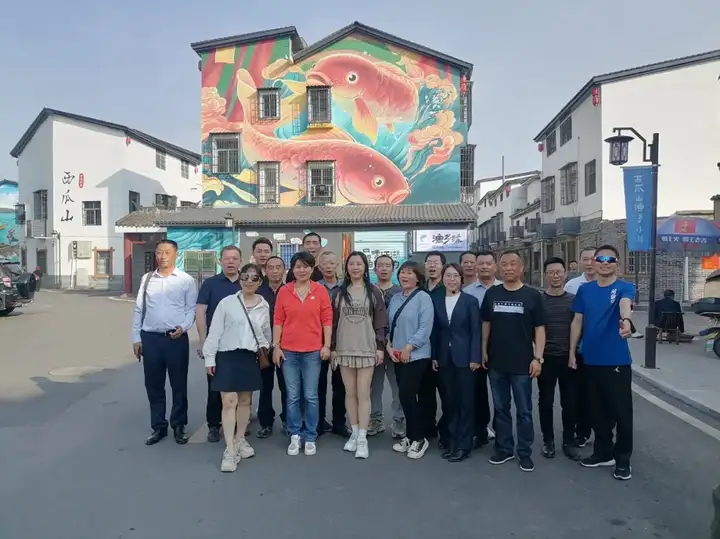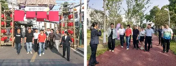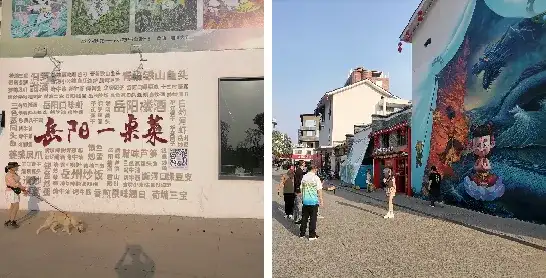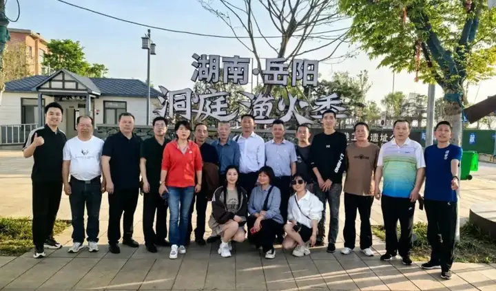 在溪野森林营和阿黎小院。这两个地方充满了乡村生活的气息,宁静而祥和。在溪野森林营,大家看到了现代化的露营设施与自然风光的完美融合,想象着夜晚在这里仰望星空的美妙场景。阿黎小院则以其独特的民俗文化展示吸引了众人的目光,精美的手工艺品、传统的生活用具,无不诉说着岳阳的民俗风情。 二、渔乡小镇:渔乡文化现代演绎 来到洞庭湖畔西瓜山渔乡小镇。调研组走进焕然一新的渔乡创客小集市。白墙黛瓦间,渔民号子墙绘与现代涂鸦相映成趣,渔船造影的墙壁下,几位老人围坐,构成一幅鲜活的渔家风情画。"这里曾是破旧的渔民村,改造后引入文创工作室、渔家民宿等业态,青年创业者的摄影工作室和文创工作室今年又进驻了多家。"西瓜山渔乡小镇招商办负责人介绍。