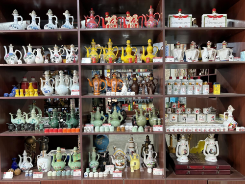 壶中倒酒杯中饮,千年前如此,如今亦如此。此区域所展示的各种饮用酒多以酒壶酒杯造型所示,如今这类造型的饮用酒载具很是少见,而一观此处,又颇觉几分本该如此。 十五、逍遥山庄酒馆·老酒区域