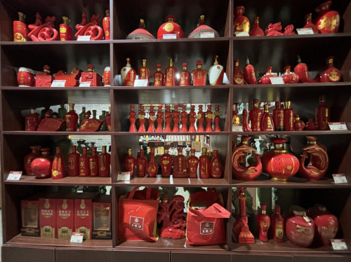 四大美女作为传统文化中最为人所知的众传奇女性的其中四位,西施、王昭君、貂蝉、杨玉环(杨贵妃),她们以“沉鱼落雁之容,闭月羞花之貌”闻名,又因“四大美女”这一称号,其众影响力辐射到了生活中的各个角落,酒,自然也在其中,此区域所展示的各种饮用酒便皆以“四大美女”为主体进行载具设计。 七、逍遥山庄酒馆·中国红区域
