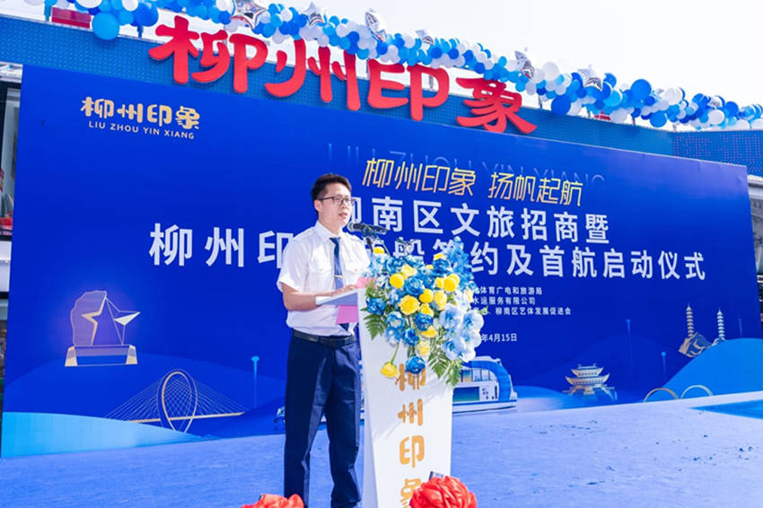 他介绍说:柳州因水而兴,柳江是龙城的灵魂。为了让游客以全新视角感受柳州之美,他们团队历时两年打造了这艘“水上会客厅”——柳州印象号游船。这不仅是一艘观光船,更是一座移动的文化展厅。船舱内设多媒体互动舞台,顶层露天观景台可360°观看百里柳江景色,同时还开发了“游船+研学”“游船+婚庆”等定制化产品,实现“一船多用、四季可游”。项目从立项到启航,都得到各级领导,各界朋友的大力支持与倾心帮助。今天签约的文旅招商协议,将为柳江水上旅游注入更多资源,助力产业链不断完善。未来,他们将以柳州印象游船为起点,联动谷埠街商业区,打造南车渡码头文化旅游新业态。预计首年接待游客超30万人次,带动就业200余人,柳州印象游船还肩负着推动文旅转型升级的使命。将坚持“品质至上、游客至上”的服务理念,打造安全、舒适、难忘的水上体验,为柳州市文旅产业发展作出我们应有的贡献……
