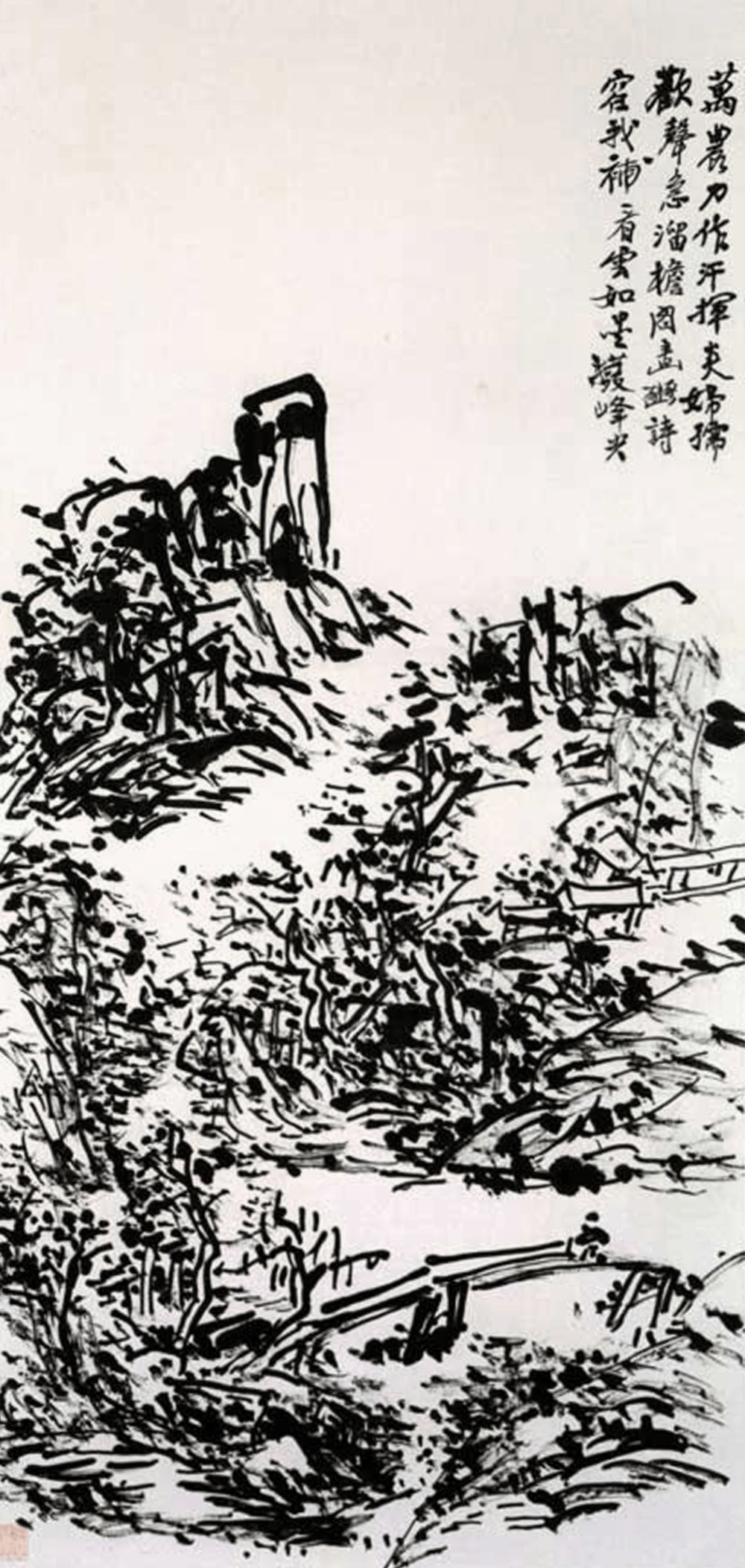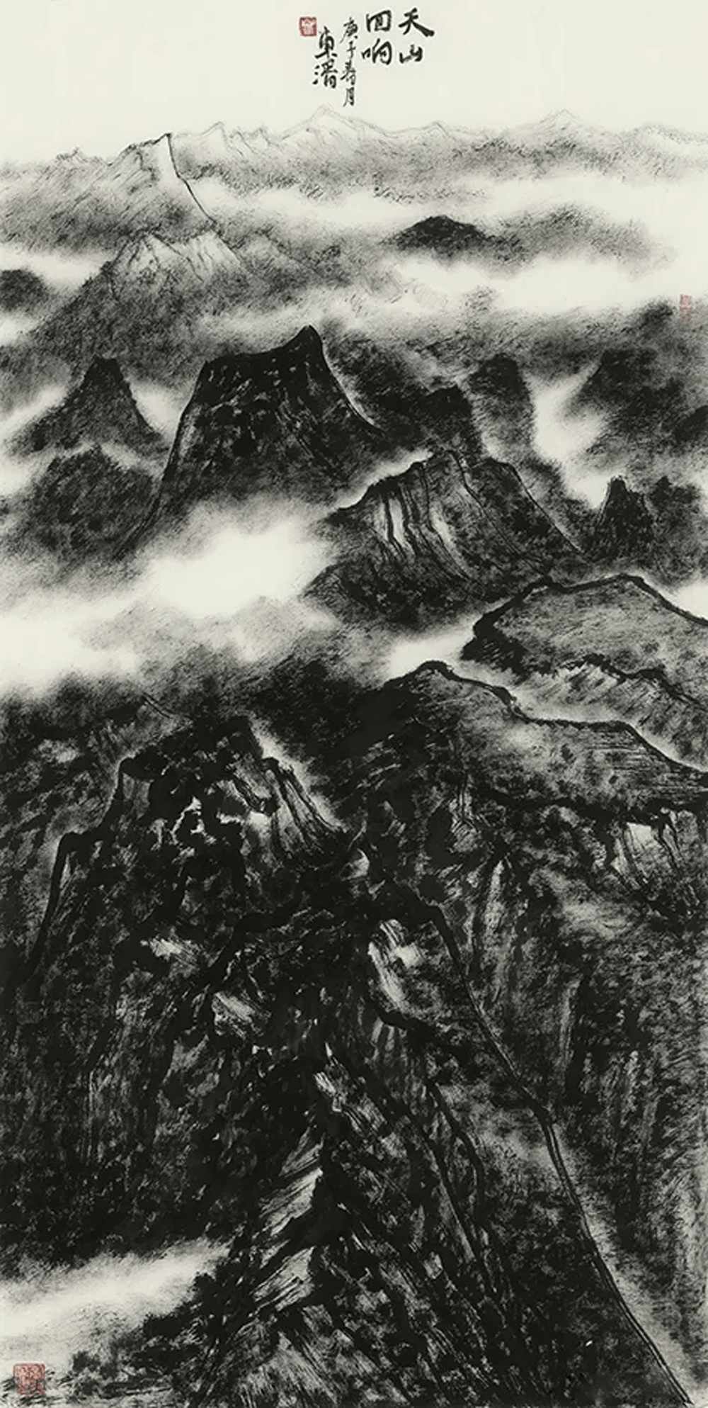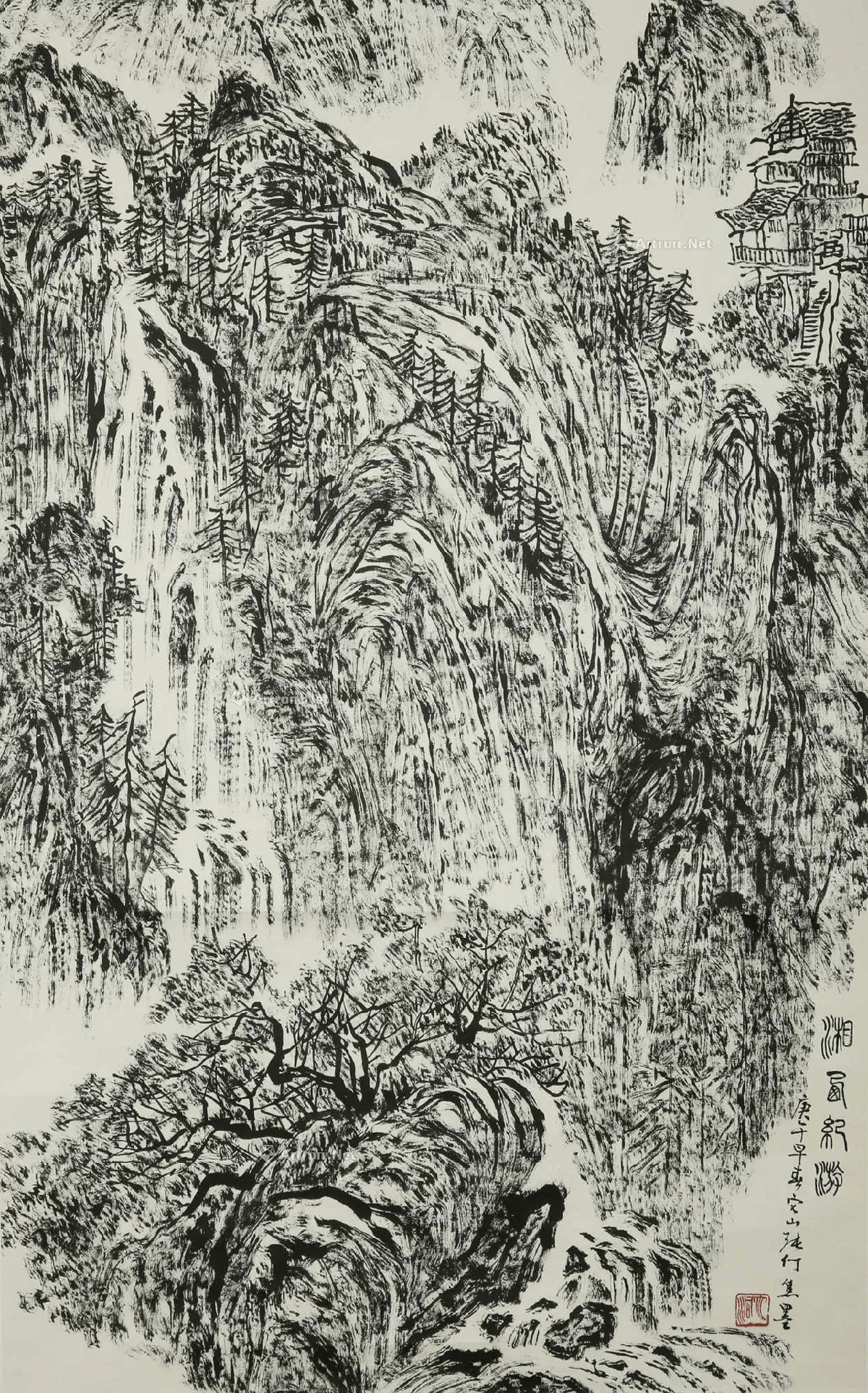 吴长江铜版作品 铜版画属于凹版画,也称蚀刻版画。 吴长江先生多年来对我在焦墨艺术上各个层面给予指引、支持与教诲。吴先生热爱青藏高原,坚持进藏写生创作,以青藏高原为艺术题材和生活的高地。 这幅作品的技术难度非常高,每一微小的空间都有笔触、方向、转折、起伏、虚实,一个角度看到安静,一个角度看到心跳,一个角度看到心地。这幅作品的完成需要直接和间接刻画时间是多少?画面完全在一个灰度里,人、动物、天地、生活、工作融化于草木层面,草木包含阳光温暖,灰调的力量渗透在纸上,在西藏到处都是坚硬,只有草木,牦牛的绒毛,人的肉体融汇出生命的温暖,聚焦到这一部分物象时也就聚焦出了诗意,聚焦出西藏独有的自然物我的感情。 从吴长江先生此幅作品中而可以得到如下结论: 灰调是艺术塑造自然非常重要的选择!灰调来自思想,来自设计、来自取舍! 笔触、刀痕在这里完全与草木、与绒毛融为一体后,美感油然而生! 焦墨如果表达刻画自然?如果笔墨细致入微分解能丝丝入扣如此,灰度剥丝抽茧如此,焦墨会给出我们一个什么样的艺术面貌? 写意,无论大写意还是小写意,都不是随意、大意、任意。 赖少其: 赖少其的山水画继承了新安画派与黄宾虹脉络,同时吸收版画技法,作品如《黄山烟雨》兼具写实与写意,被誉为“穿越古今的画坛巨匠”。70年代后他多次登临黄山,创作《黄山飞瀑》《万松图》等,以刀法入画,展现黄山雄奇与云海变幻,形成独特的“黄山美学”。 赖少其先生的这幅作品,赖先生比张仃先生小两岁(生于1915年)从时间上讲,可能早于张仃先生的焦墨,史上没有关于焦墨艺术交流的记载,从赖先生创作来看,可以明确看到水墨与焦墨在创作平面时空的交互结果和关系。 两种对立的笔法,在一种观念理念的指引下,被提纯到一定高度深度精度时,一个新的突破才会产生才会被确立。