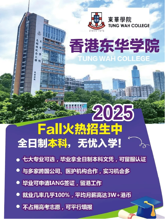 对于今年高考的考生和家长们来说,我们面临的可能是“史上最难高考”!“每3人只有1人能上本科”,预计超过1400万的考生将争夺约450万的本科录取名额!北京等大城市的本科录取率可能会骤降至56%,一些中小城市考生压力甚至会更大! 在这种残酷的竞争面前,成绩相对不突出的孩子一定要尽快规划其他升学方案,如果没有本科文凭,将来就业时会寸步难行!与其几年后用专升本再继续升学的大量投入来填补现在的决策失误,不如在当下就一步到位,长远规划,选择更稳妥的路径开启本科生涯! 之前深圳真北咨询为同学们分享过香港东华学院2025年本科申请指南,在文章发出后,也收到了大量咨询。今天深圳真北咨询为感兴趣的小伙伴们深入解读一下这个项目。如果您或者您的孩子有意向,一定要看到这个项目的价值!马上行动,联系我们的仇老师 18926006112,提前抢占名额!