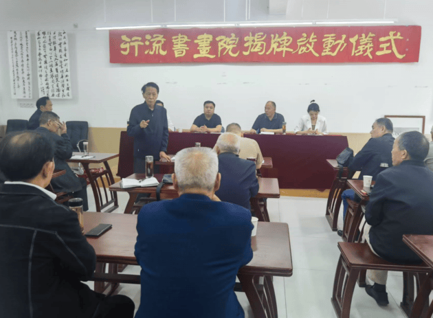 新任行流书画院院长张伟宣布了书画院会员名单、和每月书画活动计划,并作就职发言:承蒙各位领导、同志们厚爱,决不辜负众望,以此次揭牌仪式为契机,积极带领书画爱好者不断提升自己的书画水平,而且要全面开展书画普及教育活动,让书画走进学校、走进乡村千家万户,营造浓厚的乡村文化氛围,为打造文化强镇贡献力量。