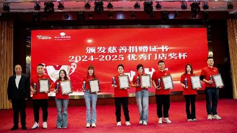 右:泰山/正元名饮集团礼品中心负责人 李朋 左:盐池县九道乐农科技有限公司董事长 郑国和 泰山正元名饮集团礼品中心负责人谢静在讲话中深情表示:"我们循着滩羊本味相聚盐池,共赴'探源滩羊本味,"鲜"动美好食光"的感恩之约。这份喜悦不仅源于这片土地的馈赠,更源于我们愿意携手书写的盐池产业发展新篇章"。她特别感谢了盐池县政府领导在乡村振兴战略中的高瞻远瞩,让盐池滩羊成为标杆产业;感恩团队成员的辛勤付出,以及厂家伙伴对产品品质的坚守。 爱心汇聚,感恩同行 活动尾声,盐池县领导为泰山名饮集团各优秀门店颁发慈善捐赠证书及“2024-2025年度优秀门店”奖杯,表彰其长期以来对公益事业的支持。 随着盐州艺术演艺中心演员献上《感恩的心》歌曲表演, 整场活动在温馨感人的氛围中圆满落幕。