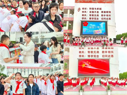 三(3)班同学以手势舞《强国有我》展现新时代少年的蓬勃力量,将现场气氛推向高潮。随后进入“感恩环节”,孩子们向父母深深鞠躬、与家人紧紧相拥,许多家长眼含热泪,将精心准备的成长礼物交到孩子手中。三(4)班表演的手势舞《我们有梦想》,以灵动舞姿诠释少年对未来的无限憧憬。在庄严的宣誓仪式中,全体学生高举右拳,用稚嫩却坚定的声音立下誓言:“以诚心对他人,以孝心对父母,以热心对社会,以忠心对国家!”