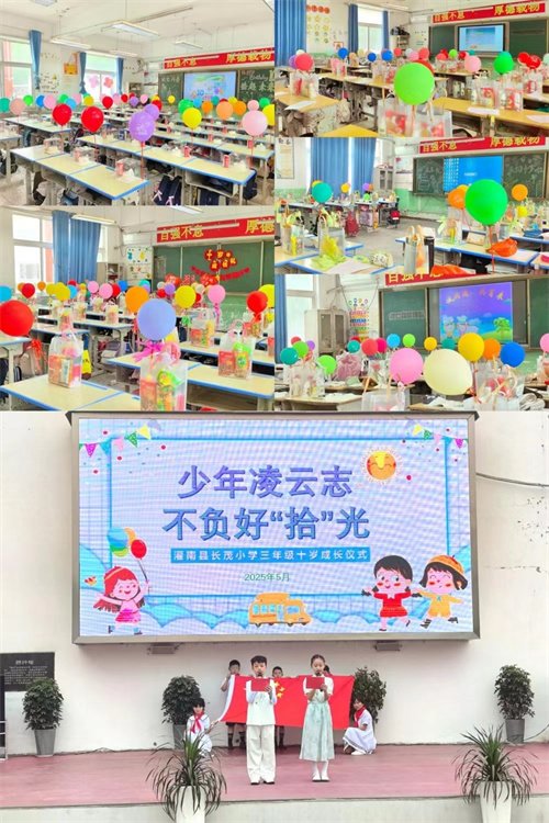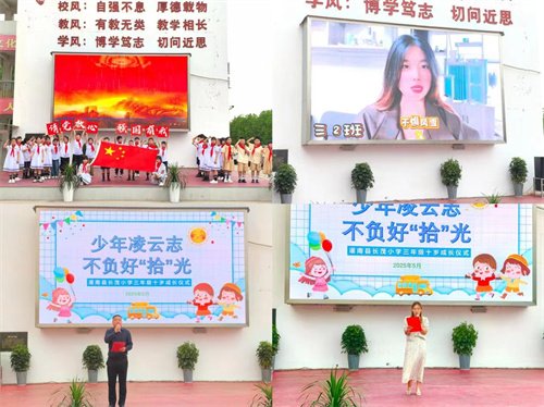 5月中旬,长茂小学以“少年凌云志 不负好‘拾’光”为主题的十岁成长仪式在学校隆重举行。三年级全体师生、家长齐聚一堂,共同见证孩子们迈向人生新篇章的重要时刻。活动由小主持人王悦、陈骁联袂主持,现场洋溢着温馨、感动与成长的蓬勃朝气。