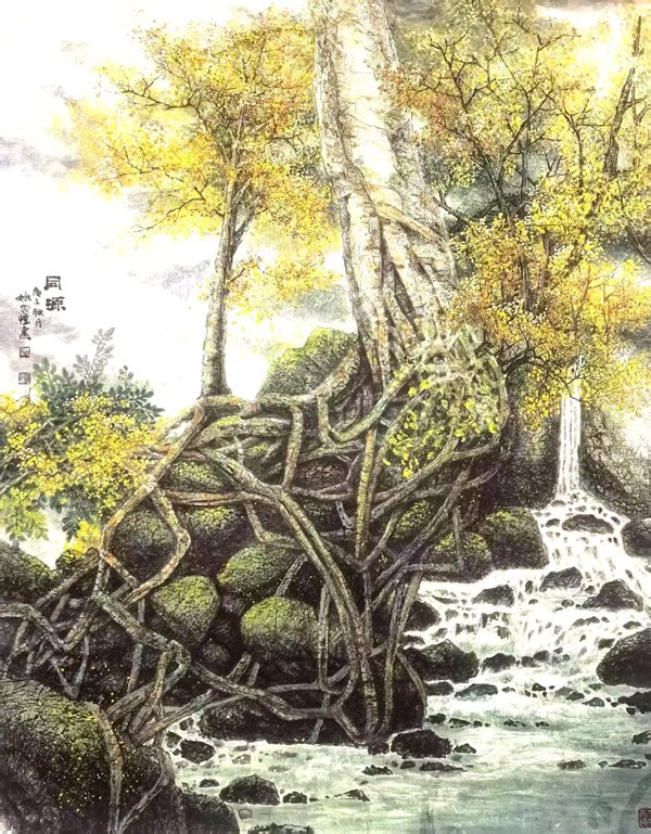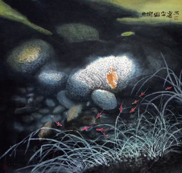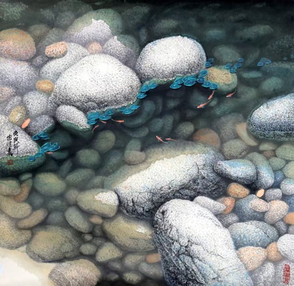 ![]() 【艺术简历】 姚家恺(嘉凯),1960年出生,北京人,号水石,清华大学美术学院美术理论研究与书画创作高研班结业,师从姜成楠、贾又福、张立辰、宋涤.王阔海等先生,2011年在北京展览中心举办个人展,2015年在河南郑州美术馆举办7人联展,出版《姚家恺画集》,2017年中央电视台发现之旅播出电视片《京城石子姚》专题的报道。现为北京市美术家协会会员,,中国华艺书画院理事,中国书画收藏家协会会员.中国广播电视社会组织联合会书画摄影专业委员会委员! ![]() 静影沉璧 金鳞游泳 ——姚家恺先生中国画超级 写实中的溪水鱼石 谈到这个画题似乎与我一直呼吁倡导的大写意精神相悖与背道,但我却深深地被姚家恺先生在宣纸上所画的溪水静影,金鳞潜形,水碛卵石,片花飘零的超级写实的画面形象所打動;令我不禁想伸手触摸一下小鱼的湿滑,试一下溪水的清凉并想着光脚戏踏大小卵石在阳光和水下的温润与惬意,硬度与凉爽……这一切的欲望都是在一刹那的潜意识里产生而忘言,是啊,艺术首先是反映生活的,这会使观者产生一种亲临其境的亲切感,而艺术又是高于生话的;这种超级写实依然归属于表现,因为从本质意义上讲准写实是不存在的,再伟大的超级写实也描绘不出事物本体本质的万分之一!这也是写意的本质要求之所在。再者艺术之苑是百花齐放,只要是富有个性与创造性的奇花异草,那怕是一棵苦菜花都有其合理存在的独特价值!更何况奇葩难得,应是呼尔歌哉。 ![]() 不难想象,似姚家恺先生的这种超级写实的这种溪鱼石花一般是在工笔的熟宣纸上得以绘成,而很难想象他却是在生宣上完成的,这需要一种超乎寻常的技法之功方能完成,吾亲观之;一道道的工序,一点点的皴擦,一层层的渲染,光那硪卵石也要成千上万点墨痕来组成,可谓不厌其烦,精益求精。一幅画多则数月,少则几周方能完成。可谓熟中能生巧,慢功出巧作也。 ![]() 纵观中国画画鱼虫工笔画的历史当由唐代袁仪为始,中承北宋刘窠《落花游鱼图》,宋、陈可九《春溪水族图》,元赖庵《藻鱼图》,明缪辅《鱼藻图》明、刘节《鱼蟹图》明清相交之八大山人的《年年有余》,清马元驭《双鱼图》及至近代白石老人的《大鲶鱼》,李苦禅之《八大山人鱼乐图》,王雪涛之《鲑鱼图》吴青霞之工笔鲤鱼到如今,其画法或工笔勾线渲染,或没骨积墨,或写意积墨,或简笔成形各显其能,尽尽其妙,但在观察的角度上大都是剖面的直视与平视,而当代姚家恺的鱼草溪石才是真正的中国画的鸟视之法,即俯视观而绘之、这确实增加了造型绘画的难度,且更符合人们在野外观看溪中鱼的真实感受。而其复笔积点墨色的卵石与反复渲染的水碛倒影更是前人绘之未绘,难其所难之成也。 ![]() 吾对继承与创新的辨证关系早有言之:“艺术之品质在于健承,艺术之生命在于创新。没有继承的创新等于湖乱塗鸦,而没有创新的继承等于浪费生命。” 纵观姚家恺先生的鱼溪石花的超级写实既来源于传统的画鱼之法,又在前人之基础上有所突破,有所创新,这显然是难能可贵的!其技法与艺术成就为中国绘画平添了一种新的艺术符号与创新景观。为中国画的发展做出了很大贡献!望百尺竿头更进一步。 王阔海—— 2024年元月31日于京华平西府诗林园 ![]() 记得家恺第一次来我家中作客时就携带了他创作的潭石作品给我看。 当时我眼前一亮,惊叹于他对物象深入观察和刻画的能力——把水潭场景如特写般的镜头呈现在观者面前,使人有身临其境之感。 看了他的作品会不由地联想起童年时代或成年之后带着小孩在炎热的夏季到小溪水潭边嬉戏、捕捉昆虫和小鱼小虾的情景,其乐融融,回味无穷,这大概就是所谓艺术的感染力吧…… ![]() 家恺的潭石画,在国画界从题材内容上讲,是前无古人的;从绘画技法层面讲是高难度且具有创造性的。看看水中的卵石和露出水面卵石的色彩、形态和质量感,再看看卵石半浸于潭中水痕的深入刻画,不难知道作者为此付出的辛勤劳动。他把皴、擦、点、染的传统技法运用得极其巧妙;用色上则是吸取了西画复合色入画的长处,使得画面色调和谐浑然一体,不乏生动鲜活之感。这些深入的刻画正是其潭石作品引人注目的魅力所在。 ![]() 家恺的潭石画属于彩墨作品,彩墨画应是国画体系中的一个新课题,同时也是国画创新的一条新途径,这条路走起来并不容易,需要画家付出更多的艰辛来探索。 ![]() 家恺的潭石彩墨画作品是成功的,我期待着家恺不断努力,扩宽题材内容创造出更多感人的作品。 2024年夏于京北凤山中麓