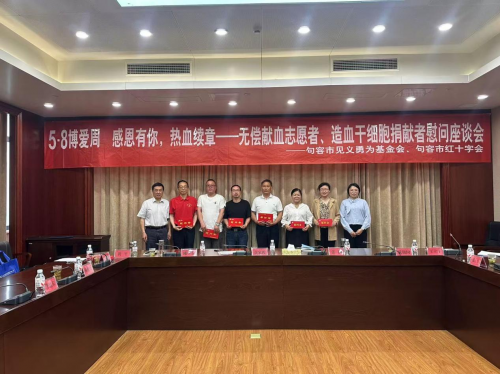 近日,句容市见义勇为基金会联合市红十字会举办了以“感恩有你,热血续章”为主题的慰问座谈活动,向全市11名造血干细胞捐献志愿者和15名无偿献血超过2万毫升的志愿者进行集中表彰和慰问。句容市见义勇为基金会理事长戴家俊、副理事长秘书长陈学东、市红十字会党组书记、常务副会长张楠等参加活动。