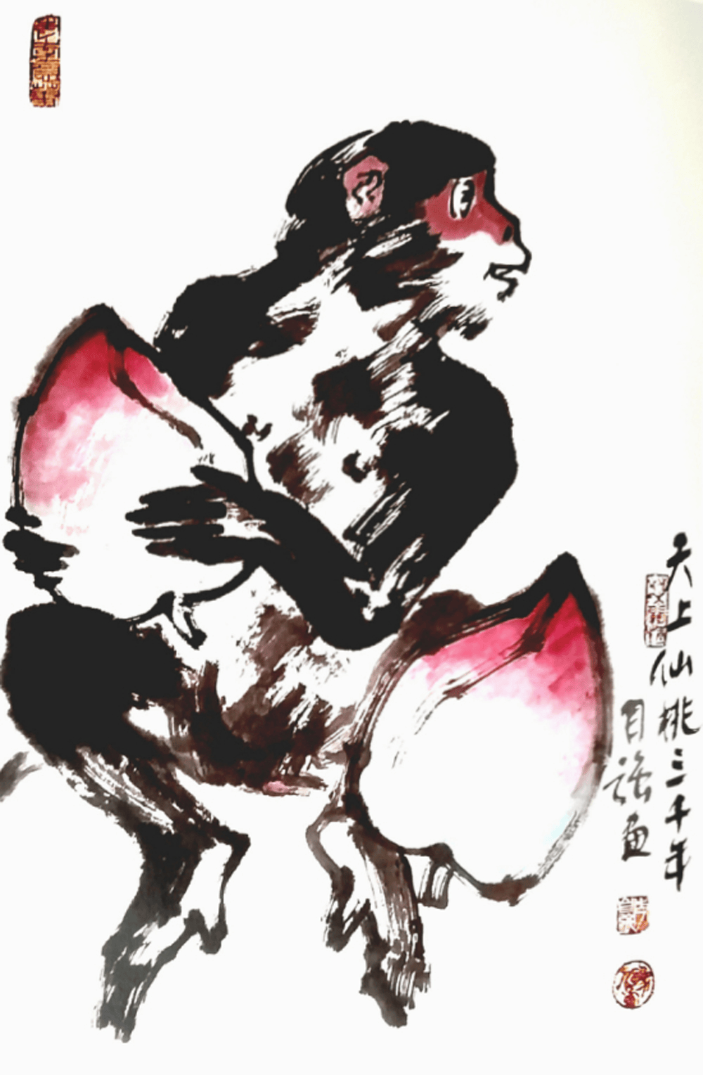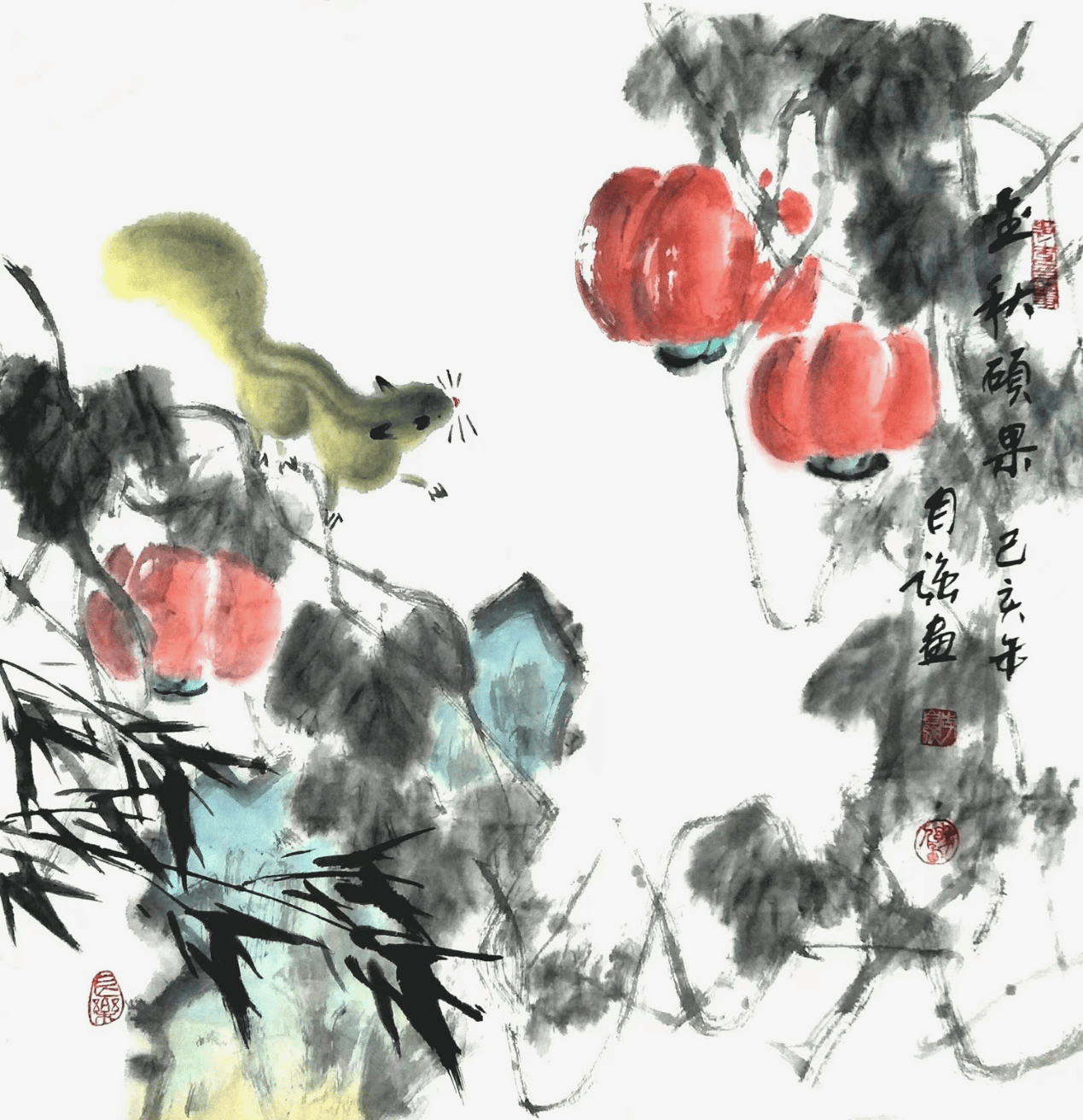 “得之目,寓诸心,而形于笔墨。”笔墨是中国画的安身立命之本,笔墨不仅是视觉形式和技术规范,笔墨还是中国画的精神内容。李先生通过对自然生命细致人微的观察,抓住了所塑造物象的精、气、神,用笔墨和心灵提炼出花鸟画的神韵与生趣,下笔精到传神,其悠然画境,兼具民族意蕴和现代意识,他的作品题材广泛,在画雄鸡、松鼠、熊猫、水鸭、游鱼、白冠噪鹛、墨竹、天鹅、飞燕等题材上都有自己出色的表现,他善于运用水墨艺术的动静、虚实、刚柔、浓淡之间的对立统一建构着自己的花鸟世界,炉火纯青的技巧,浑然天成的画面,洋溢着朴实醇厚而又率意灵动的气息。那跃动的松鼠是他笔下的一绝,而白冠噪鹛这样的灵性之物更是被他画得呼之欲岀,堪称经典。源于自然的作品营造出了一种超越自然的美,李先生用自己扎实的艺术功底、真纯的艺术想象为我们描绘了一个个生趣盎然的理想境界。每一个栩栩如生、活灵活现的形象都是艺术美、意境美、自然美的完整统一和真善美的集中体现。