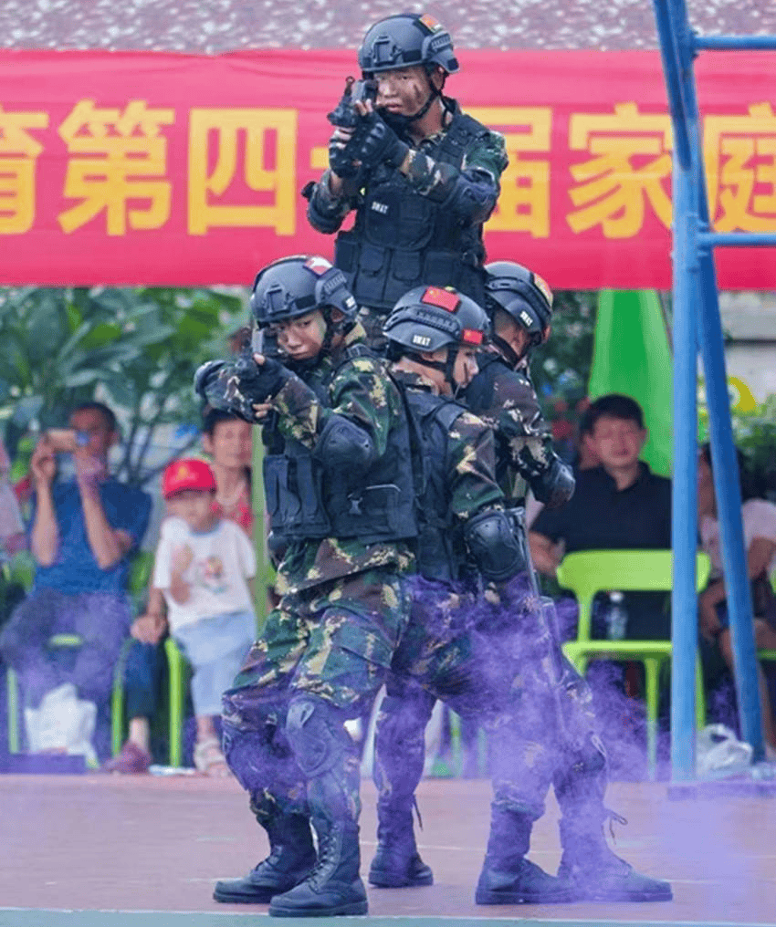 应急棍术技能精湛,实用高效,匕首操精准迅猛,展现了学员应对挑战的能力与保卫家国的担当意识。