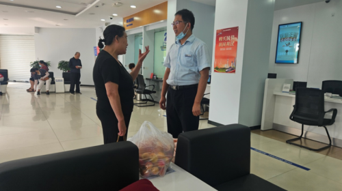 5月29日上午,一位阿姨手提满满一袋新鲜水果,脚步轻快地朝建设银行潍坊分行营业部网点工作人员走去。原来是阿姨前些日子因为操作不当导致ATM出现了吞钞,该网点营运主管第一时间察觉到了阿姨的焦急,积极协调沟通相关部门,第一时间解决了阿姨的问题。今天,阿姨特意来感谢。