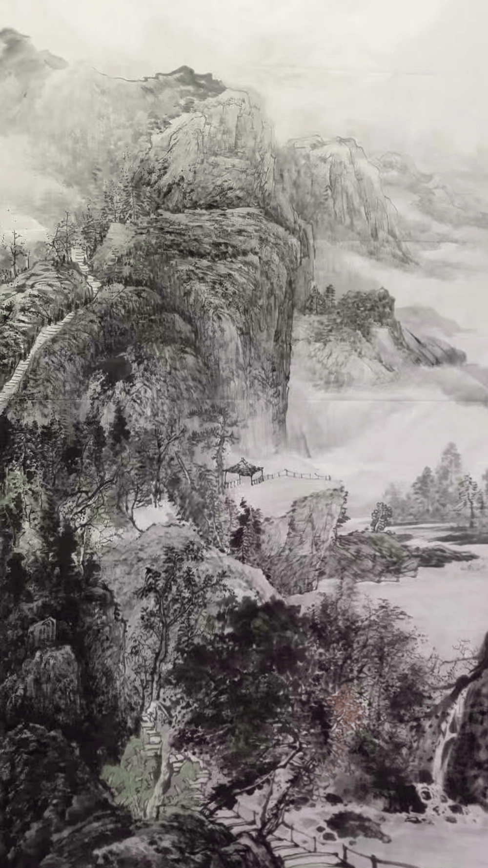 秦先生大汉身材,笔端气势也不小。画界有大山水,有小山水,这倒不是因尺幅的大与小,也非构图的全景与半景,在乎气势也。丹青妙处,观其笔意,境能夺人,笔能夺境,其实不在尺幅的大小,在乎心胸的宽窄。