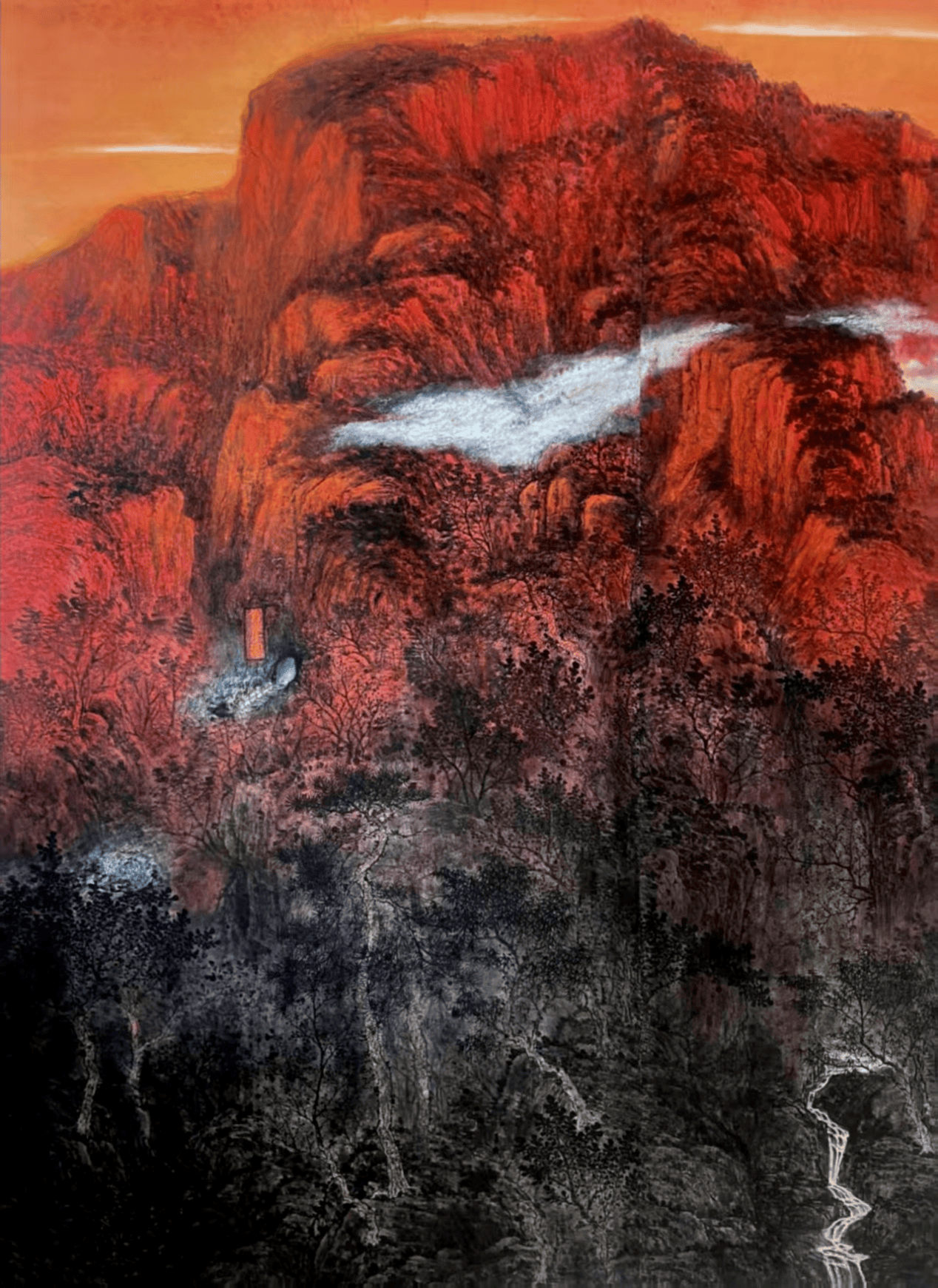 青山不墨,流水无弦,山水神态何在?性格何在?董其昌曰“宇宙在乎布局,眼前无非生机”,师了古人,师了造化,胸中丘壑自然能够折皱起来。明代画家王履画华山并作序:“余师心,心师目,目师华山。”一方水土一方人,水土养性格,山水滋逸气,古今得道画家,其实皆地域文人。石涛有“一画之论”,其言精炼诘奥,其旨禅机难测,有语曰:“《画语录》一册,立志既幽深窃渺,而造语又自成一子,画家不传之秘,发泄于此,最可宝也。”没有情绪何以发泄?有了情,山水便有了活络,有了神态。人有情,山水方能生情。一画者,形神一体、天人一体、内在生命与表现形式一体也。