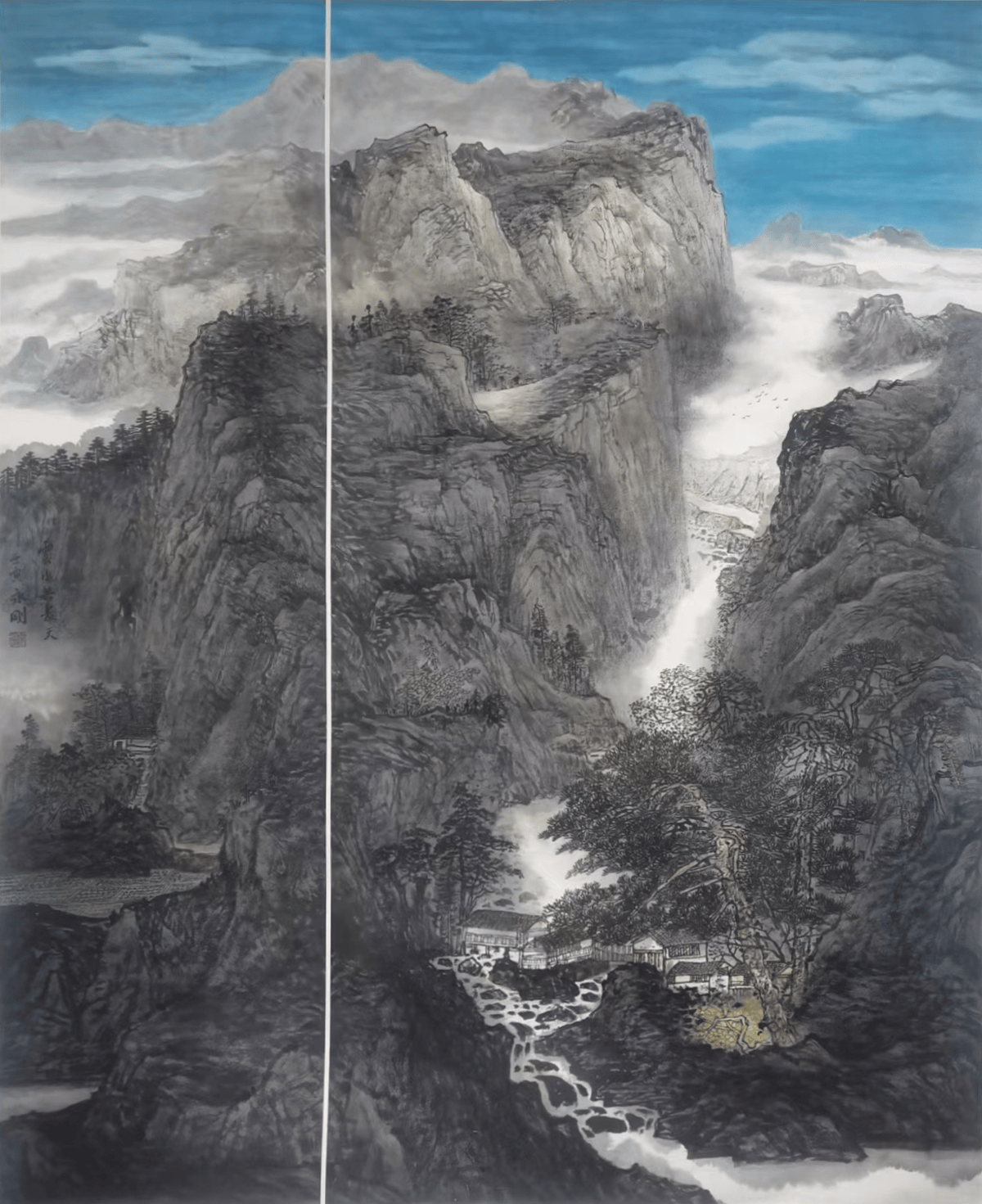 笔在山水,阔在襟怀,胸中山水,明人见性,无穷奇幻意,尽在一心间。无论太行抑或吕梁,其雄强之风、刚毅之势,总能予人一番健康蓬勃、积极向上感觉。爽朗朴直、痛快淋漓之外,是舒心待月、漫吟词曲的略迹原情,是味外之旨、韵外之致的言近旨愿。黄庭坚所云“虚心观万物,险易极变态:皮毛剥落尽,惟有真实在”,盖所指。