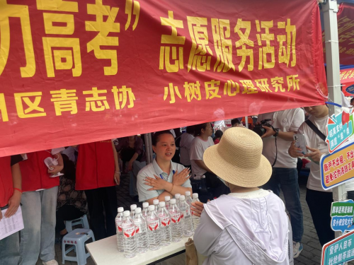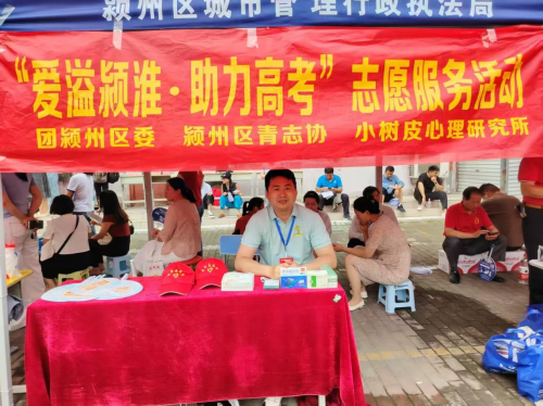二、“心舒高考路,志愿解压舟”助力高考公益服务活动:阜阳市小树皮心理和社会工作研究所党支部组织“爱心送考”和“公益心理咨询”等活动,为高考考生提供便利,传递社会温暖。