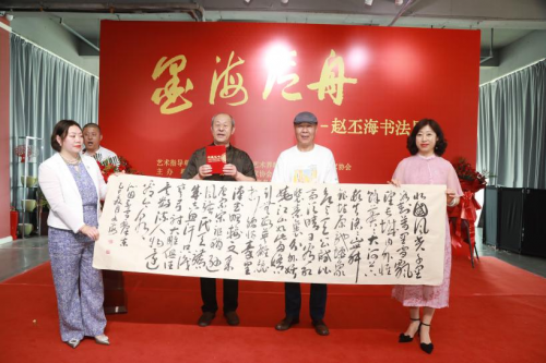 开幕式由高新区书法家协会主席赵建飞主持。完成各项预定议程,随后,赵丕海将自己创作的书法作品《沁园春·雪》捐赠澜湾美术馆,馆长徐怀敏接收并为赵丕海颁发收藏证书。