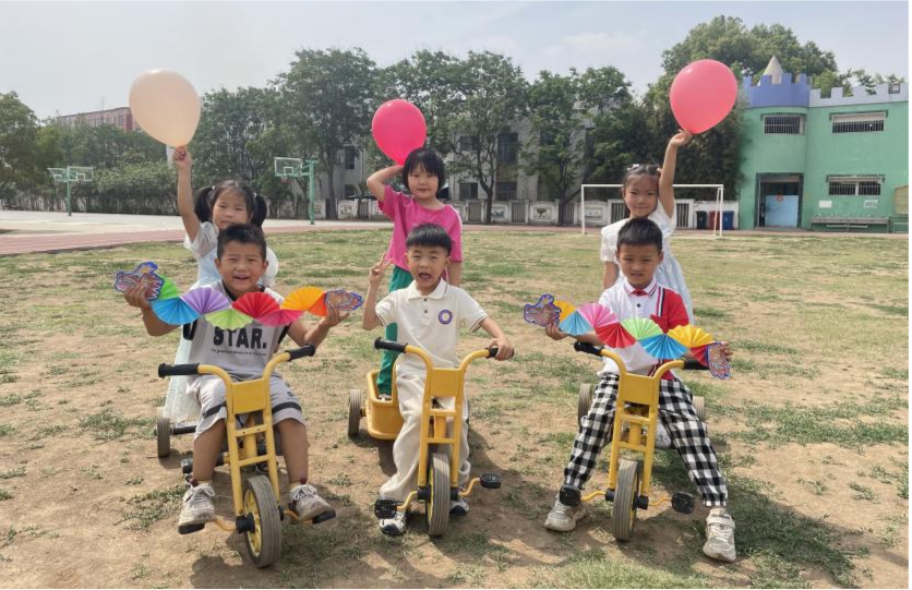 在班级里,孩子们积极参与了各种丰富多彩的活动。他们用灵巧的小手制作出精美的手工作品,用稚嫩的歌声唱出心中的喜悦,用欢快的舞蹈表达对生活的热爱。在“叠叠乐”游戏中,孩子们手拉手、心连心,共同体验合作的快乐;在表演环节,小朋友们身着漂亮的服装,自信地走上舞台,展现自己的风采,赢得了阵阵掌声和喝彩。户外活动同样精彩纷呈。孩子们骑着黄色的小三轮车,手持彩色纸扇,在操场上尽情嬉戏。他们挥舞着气球,追逐着阳光,仿佛整个世界都变成了欢乐的海洋。