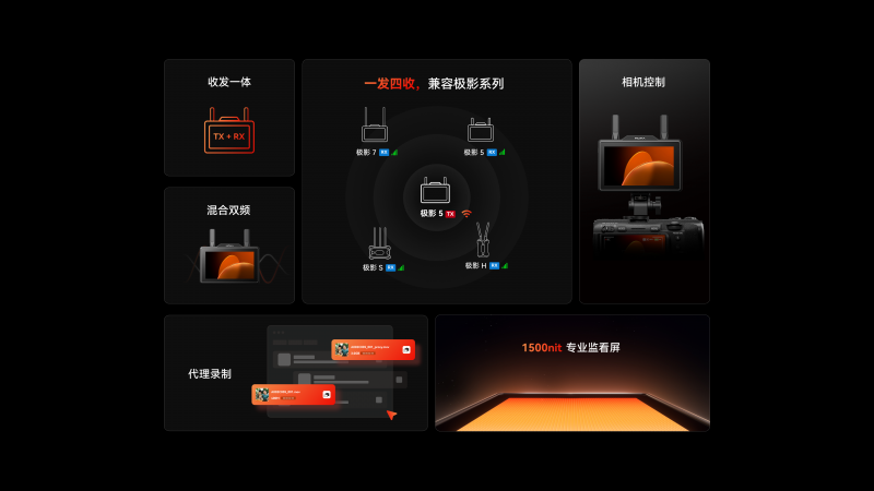 其中,极影5作为本次合作中的首发新品,将在FIRST训练营真实拍摄现场投入使用。这款5.5英寸无线图传监视器具备收发一体、低延迟、操控相机、代理录制等多项功能,搭配1500nit超高亮屏,适配导演移动、摄影机机头等多样使用场景,是真正意义上的“创作现场之眼”。 此外,极影5支持极影生态全系互联、一发四收、广播/单播自由切换,不仅为团队调度带来高效协作效率,更通过生态优化,赋予中小团队专业级的现场协作能力。