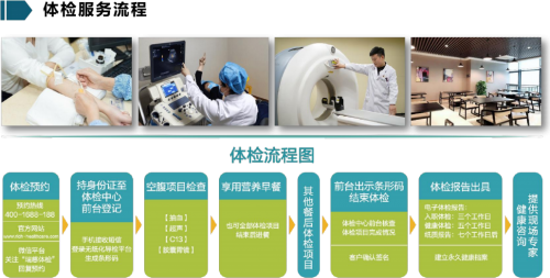 据导检服务员介绍,体检现场服务流程:1,前台或体检自助机登记 ;,2,进入导检系统 开始排队; 3,检查室导检屏显示;,4,手机端提醒;,5,进入科室做检查,检查完成后,进入下一轮排队 ;,6,系统 智能计算中,引导体检者到下一个科室进行检查 ; ,7,检查完毕用餐。信息化体检流程:1, 体检方案定制1+X科学组单,灵活的加项包配置,手机自主组单;2.体检预约l手机自动带出体检凭证,自主换检区预约,智能加项、线上付款,体检临近提醒;3.线上自助登记 ,手机自主登记体检,免去前台排队, 自助机登记,套餐自费升级, 自动打开无纸化引单;4.无纸化体检l随时随地查看队列动态,检查进度一目了然,体检注意事项弹出提醒l诊间按需加项,线上支付,双排队策略,体检更快一步;5.报告查询l报告完成后点击短信链接, 无需登录即可查看报告l 图形化历年报告数据对比, 健康状态趋势一目了然, 超期未体检提醒;6.健康关怀,健康宣教,生活方式指导,人工智能辅助报告解读,在线报告解,电子胶片申请。检后,报告精细化解读, 健康问题早发现。