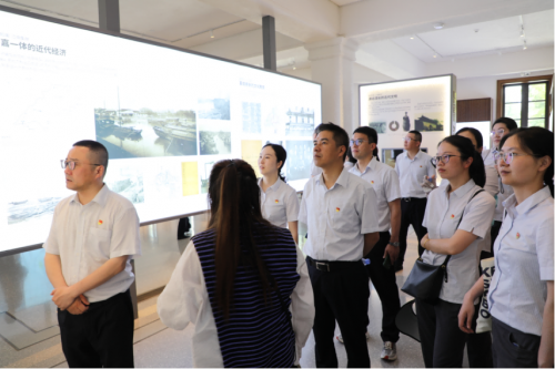 实地溯源:重走一大路感悟初心使命 党员们沿着“新时代·重走一大路”的足迹,首站来到了复建的嘉兴火车站。这座由1921块红色纪念砖与2021块青色纪念砖构筑而成的建筑,以独特的建筑语言诉说着建党百年的辉煌历程。在站房内的教育展馆,党员们透过铁路变迁史的展陈,见证了嘉兴从革命原点到现代化城市的华丽转身;在狮子汇渡口——一大代表登船处,实景还原与历史讲解让党员们仿佛穿越时空,深刻感受到了革命先辈“一叶红船启新程”的坚定信念。每一处地标都成为了流动的党课讲台,让党员们在历史场景中重温“开天辟地、敢为人先”的一大精神,将红色根脉与金融工作者的使命担当紧密相连。历史的厚重与革命先辈的伟大精神,在这里交相辉映,更加坚定了党员们传承红色基因、赓续清廉初心的信念。