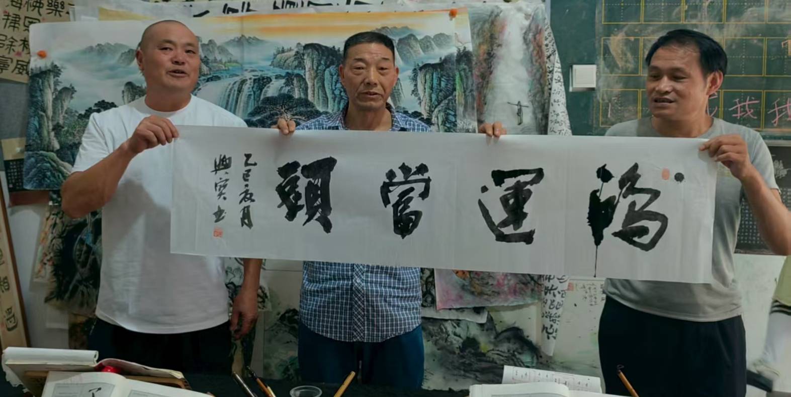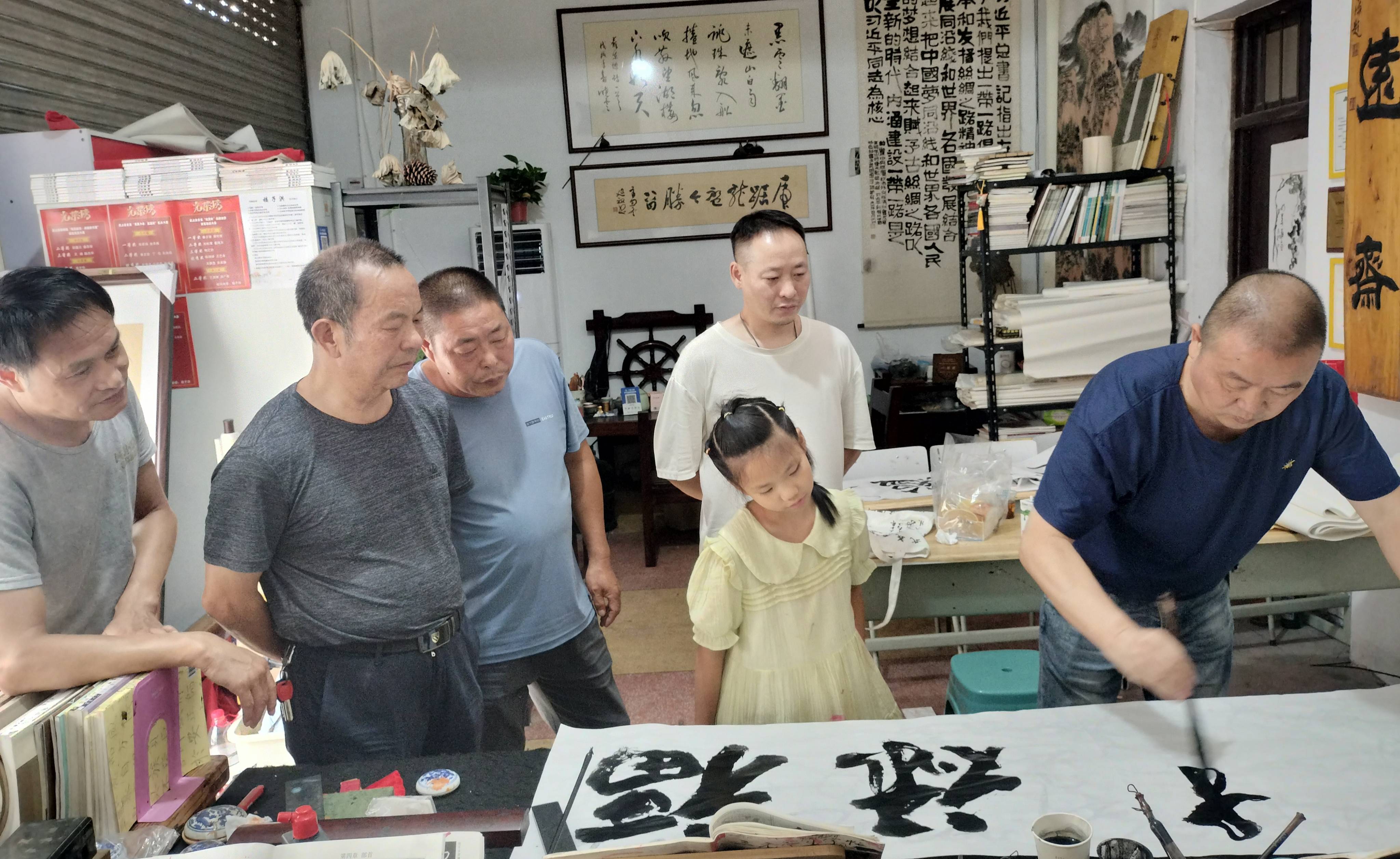 活动伊始,中央美术学院客座教授、中硬协会员楼子洪強调,每个艺术家围绕中国强大、书香武义这个主题独立完成一幅作品。至下午三点,大家共创作草、隶等形式不一的作品16幅,省书协会员何国茂、资深草书大伽徐连文、春香书画院副院长何其妙等对即兴写的作品进行精准点评,共"研"书画。随后,部分作品被前来观看的爱好者收藏。