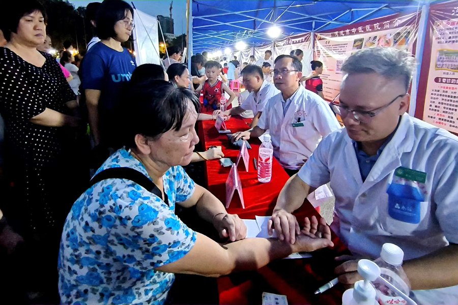 ![]() ▲河池名中医、市三医院中医科主任覃海给市民把脉问诊 活动紧扣“归雁兴区·才聚金城”的引才主题,旨在深化中医药文化传播,提升市民健康素养与文化自信,营造良好的中医药文化氛围,同时精准释放引才引力,吸引中医药领域专业人才来金城江区就业创业,尽力创新打造“中医文化 + 夜间经济”融合场景。 活动现场灯火辉煌、药香四溢。河池市金城江区卫生健康局党组书记、局长黄兰艳在开幕讲话中表示,中医药是民族瑰宝,也是激活区域发展的重要力量。近年来,金城江区大力发展中医药产业,构建起“种、研、医、养、游”一体化生态体系。此次中医夜市活动,让中医药文化在烟火气中展现新活力,既能让市民领略其魅力,也能让中医药人才看到金城江的高质量发展的潜力。