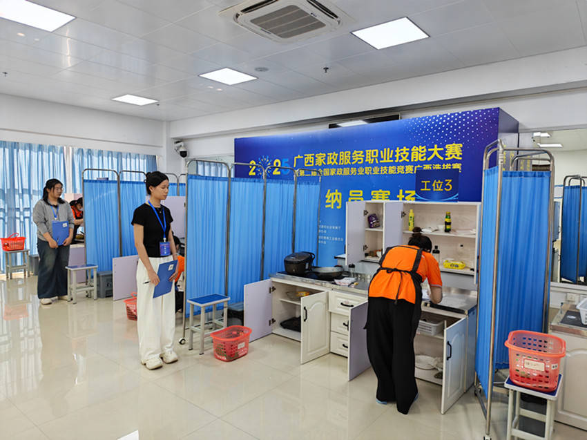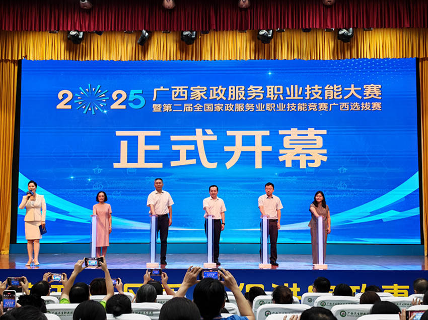 | 7月17日,2025年广西家政服务职业技能竞赛暨第二届全国家政服务业职业技能竞赛广西选拔赛在南宁国际会展中心隆重开幕。来自全区14个地市的190名家政服务能手将在家政服务七大领域展开技能比拼。