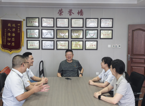 活动期间,该行沈家门党支部党员一行走进舟山中巨远洋渔业有限公司,开展了一场别开生面的沉浸式主题党日活动。在中巨远洋,党员们被公司法人代表、党员刘波同志办公室内一面鲜红的党旗深深吸引,这面党旗在荣誉墙的映衬下,有力地诉说着一位党员企业家的不凡故事。企业党员刘波同志向大家分享了一段惊心动魄的救援经历:2019年11月7日,在东南太平洋上,“宁泰36船”因渔获物移位不幸倾覆,25名船员生命危在旦夕。危急关头,刘波同志迅速指挥“中巨18号”船只火速驰援,与狂风恶浪展开殊死搏斗,最终成功将全部落水船员安全救起。“那一刻,我深刻体会到,党员的责任就是生命之舟的桅杆。”刘波同志的平静话语中透露出坚定的担当力量,深深打动了在场的每一位党员。
